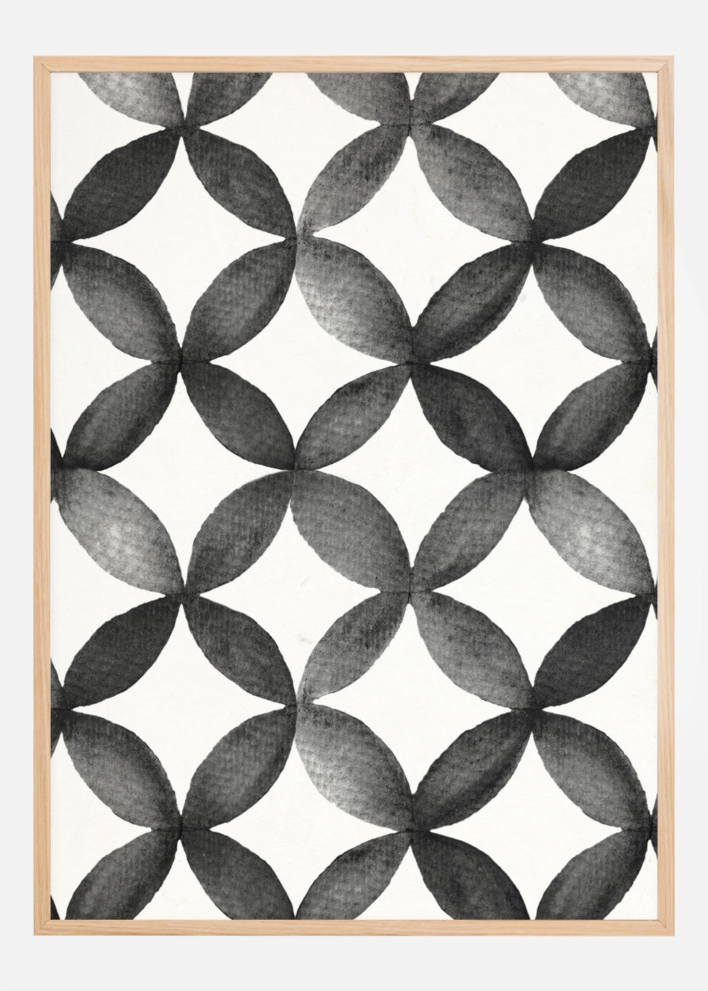 Denna poster är en hyllning till den estetiska kraften hos geometriska mönster. Det genomgående motivet består av en serie sammanlänkade bladväxter i graciösa svarta och vita nyanser. De skapar ett ständigt flödande mönster som både är fängslande och avkopplande att betrakta. Denna print förenar traditionell naturinspiration med en modern grafisk stil, vilket gör den till ett sofistikerat tillskott i varje hem.