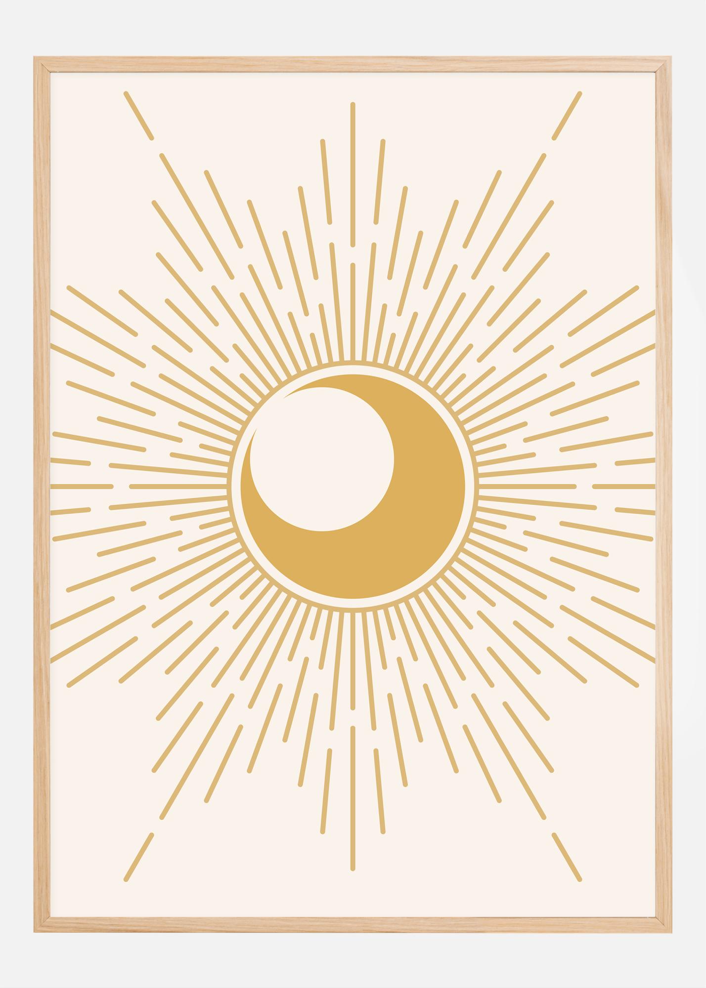 Denna soliga poster, som utstrålar värme och livsglädje, är en strålande tillägg till alla rum som behöver en ljusglimt. Med sitt centralt placerade gyllene solmotiv omgiven av strålande ljusstrålar mot en mjukt tonad bakgrund, erbjuder designen en känsla av vitalitet och positiv energi. Den är ett symboliskt konstverk som påminner oss om solens kraft att upplysa och inspirera.