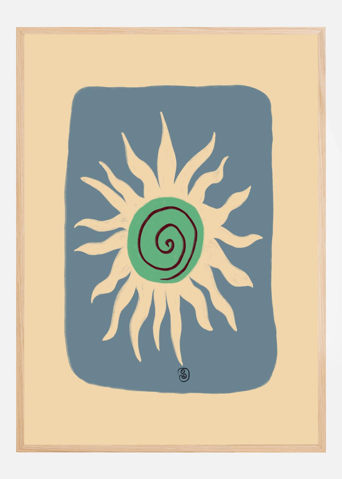Denna poster bjuder på en stilren och modern design med en solinspirerad illustration. Motivet har en central sol med ett spiralformat centrum, vilket ger en känsla av rörelse och liv. Affischen är perfekt för att skapa en konstnärlig touch i vilket rum som helst och tillför en fräsch och modern estetik. Det är en print som passar lika bra i vardagsrummet som i kontorsmiljöer.