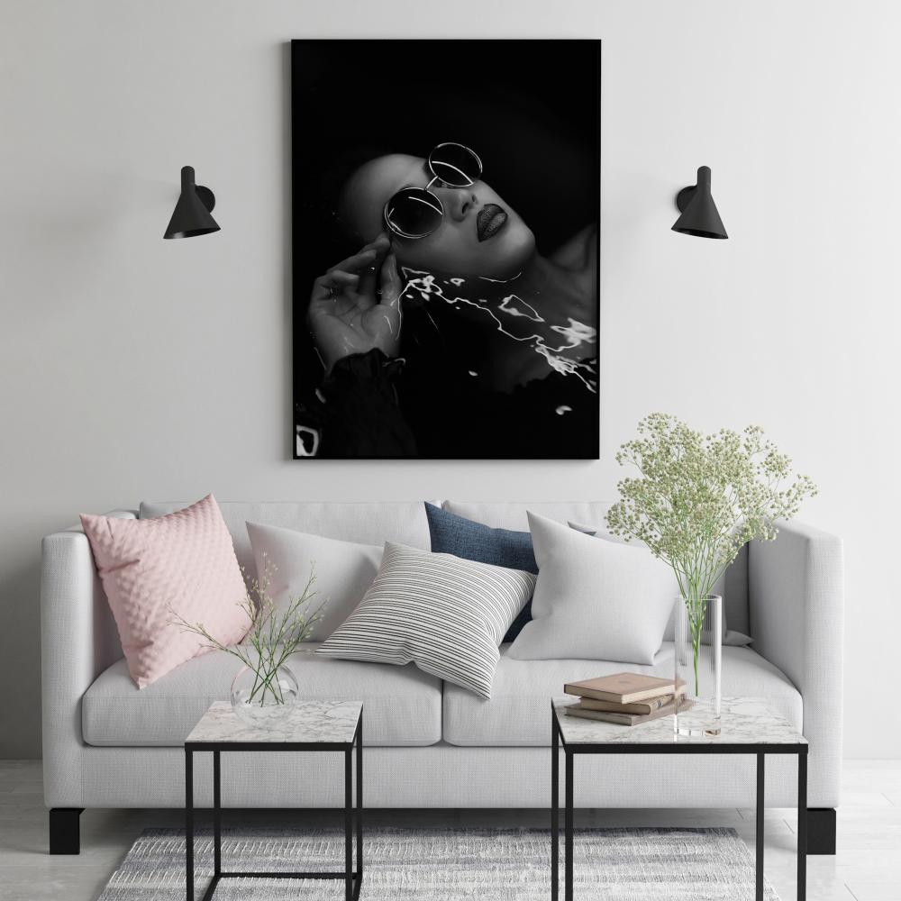 Snygg och stilren fotografisk konst i svartvitt med en känsla av fashion. En poster som med sina härliga kontraster och mjuka linjer enkelt kan kombineras med andra favoriter på en större tavelvägg.