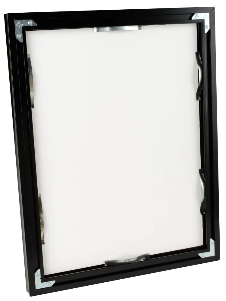 De måttbeställda ramarna tillverkas för hand i vår egen ramverkstad med floatglas, ett jämnare glas som ger bättre ljusegenskaper än vanligt maskinglas.