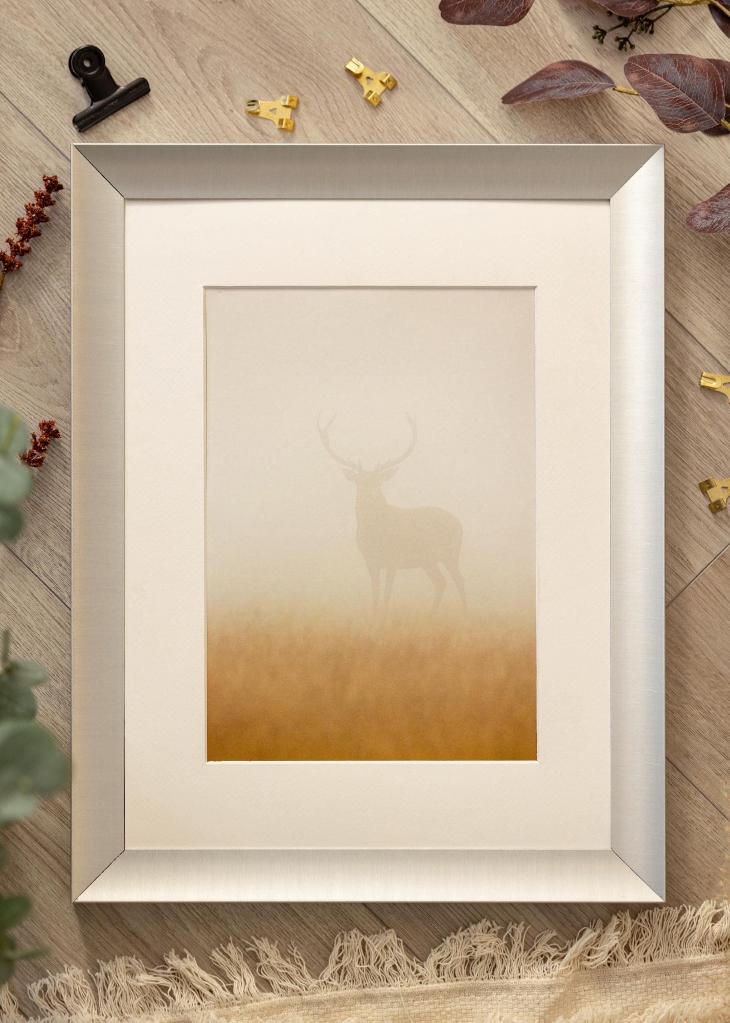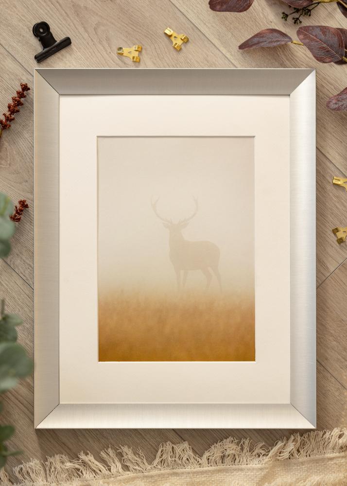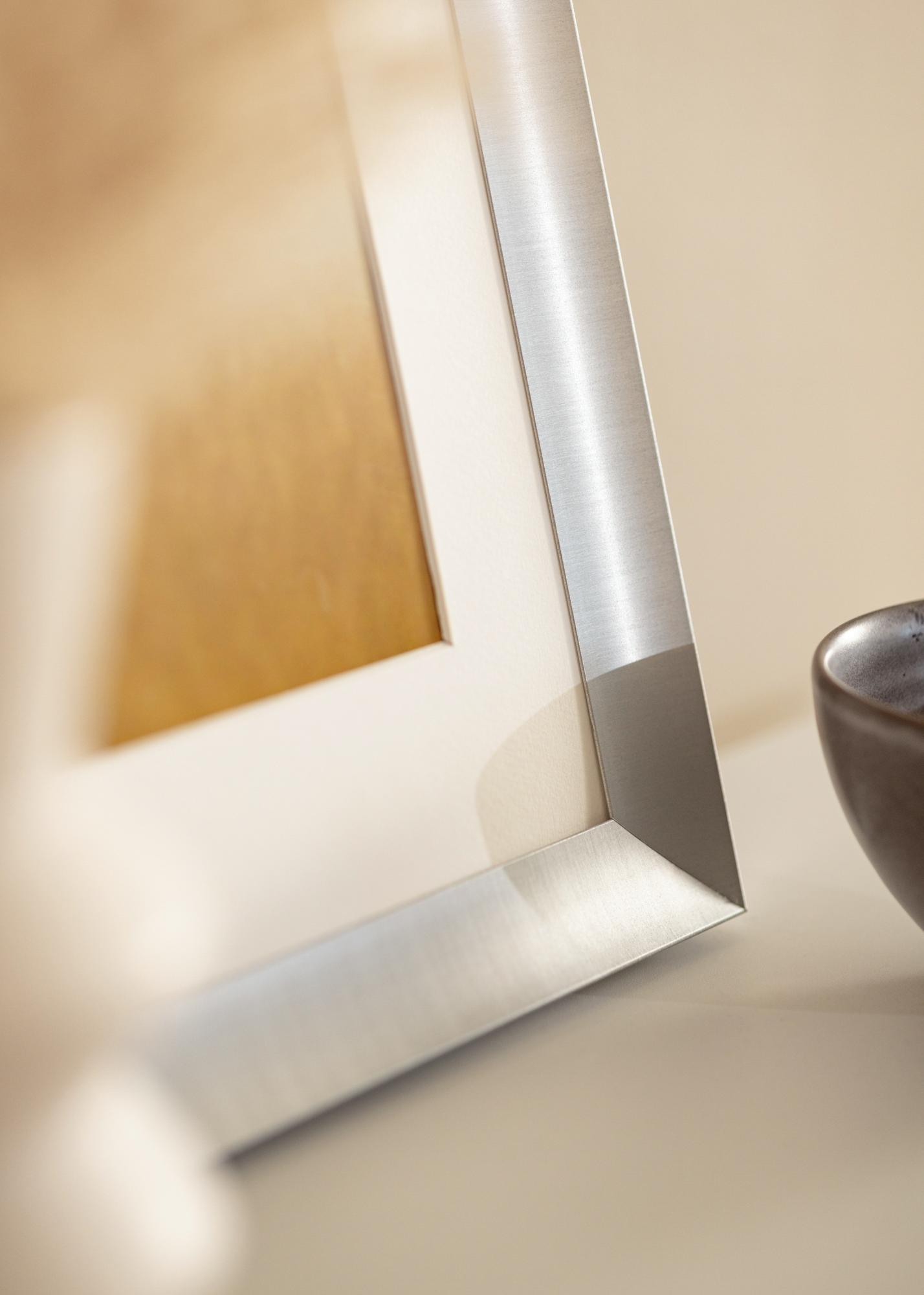 Elegant tavelram i en halvmatt silvernyans. Helt rätt att rama in fotografier i svartvitt och motiv i gråskala med, men alla bilder gör sig bra i ramen. Det stilrena utseendet i kombination med den diskreta silverfärgen gör att ramen passar in i alla typer av interiörer och miljöer, men mot en isrosa, svalt grön eller pastellfärgad vägg gör sig tavelramen extra bra. Komplettera inredningen med silverföremål och grafiska detaljer i svart.