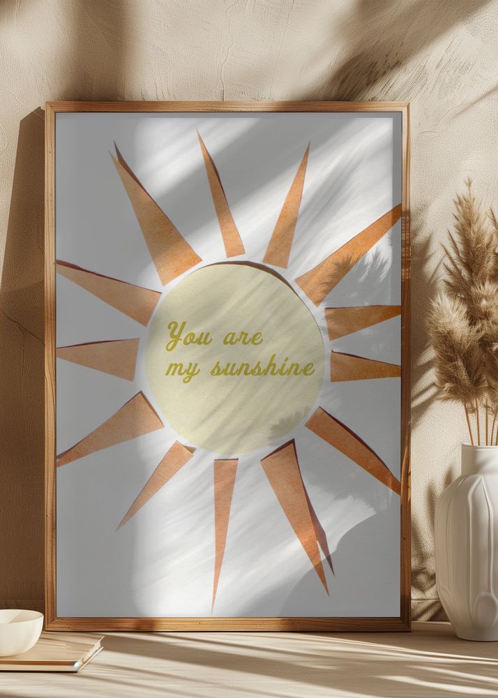 Låt denna värmande och trendiga affisch bli en strålande detalj i ditt hem eller kontor. Motivet föreställer en stiliserad sol med utsträckta strålar och texten "You are my sunshine" centralt placerad. Den inspirerande texten är framställd i en elegant och lättläst typografi, som bidrar till en positiv och upplyftande stämning i rummet. Det är en perfekt present till någon speciell, eller som ett sätt att påminna dig själv om det ljusa i livet.
