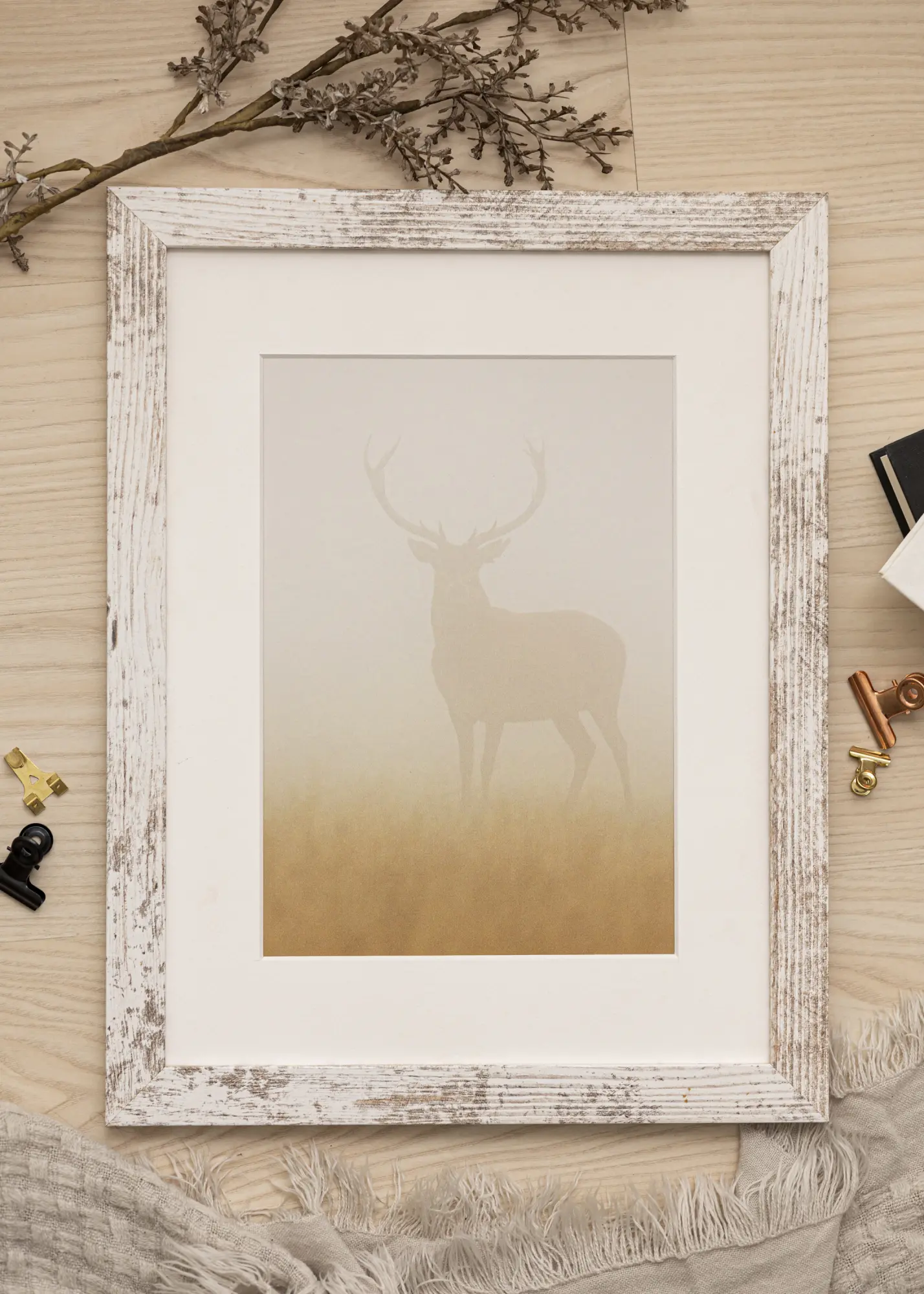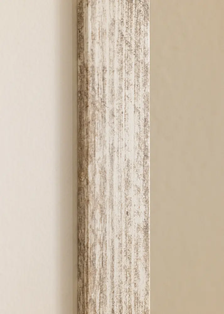 Snygg vintageram med en bred ramprofil med en sliten look i vitt och trä. Ger en extra dimension till dina bilder och passar perfekt när du vill ha en ram genuin vintagekänsla.