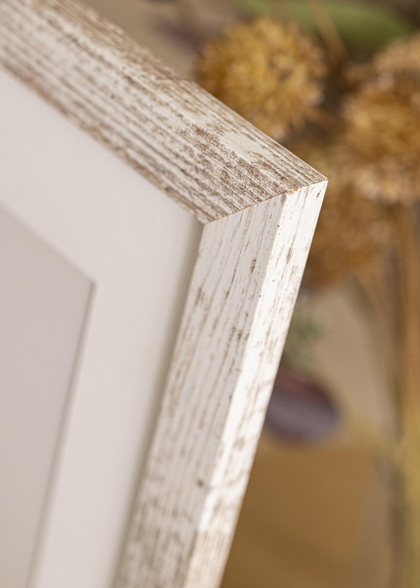 Snygg vintageram med en bred ramprofil med en sliten look i vitt och trä. Ger en extra dimension till dina bilder och passar perfekt när du vill ha en ram genuin vintagekänsla.