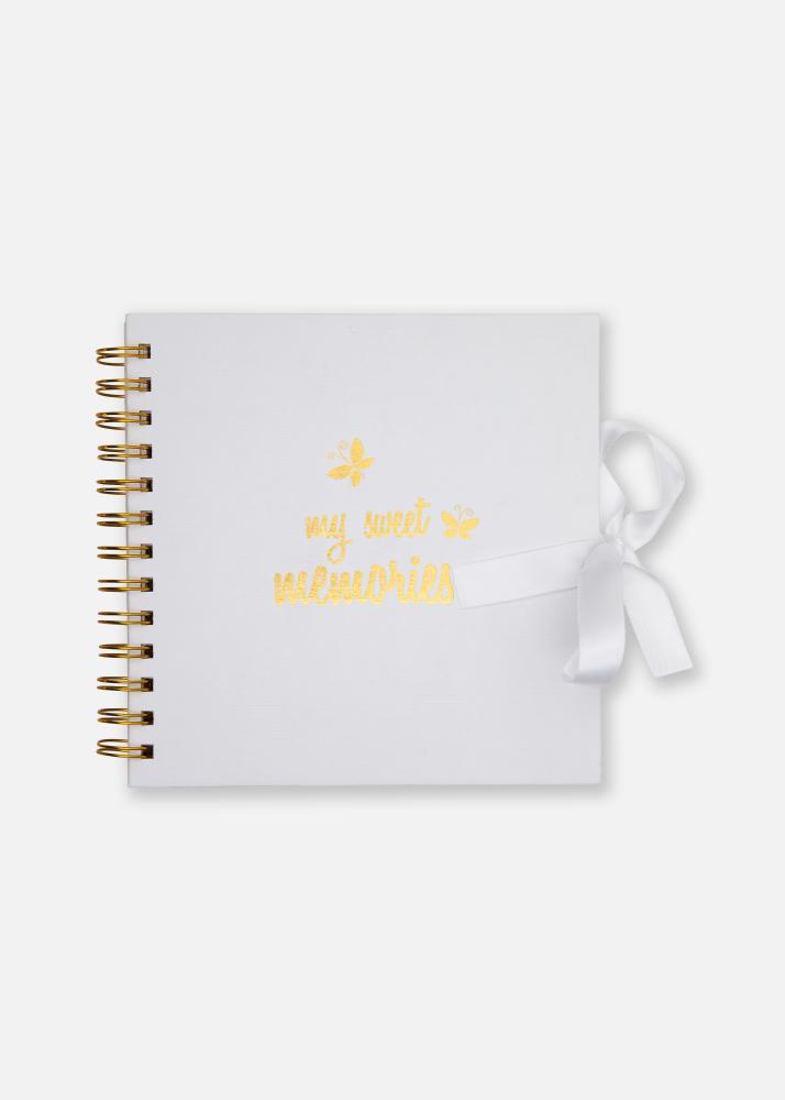 Ett sött spiralbundet album som du kan försluta med hjälp av vita band. Ett perfekt album att förvara alla dina finaste minnen i! På framsidan är texten "My sweet memories" tryckt i guld omgiven av fjärilar. Albumet innehåller 24 syrafria vita blad.
