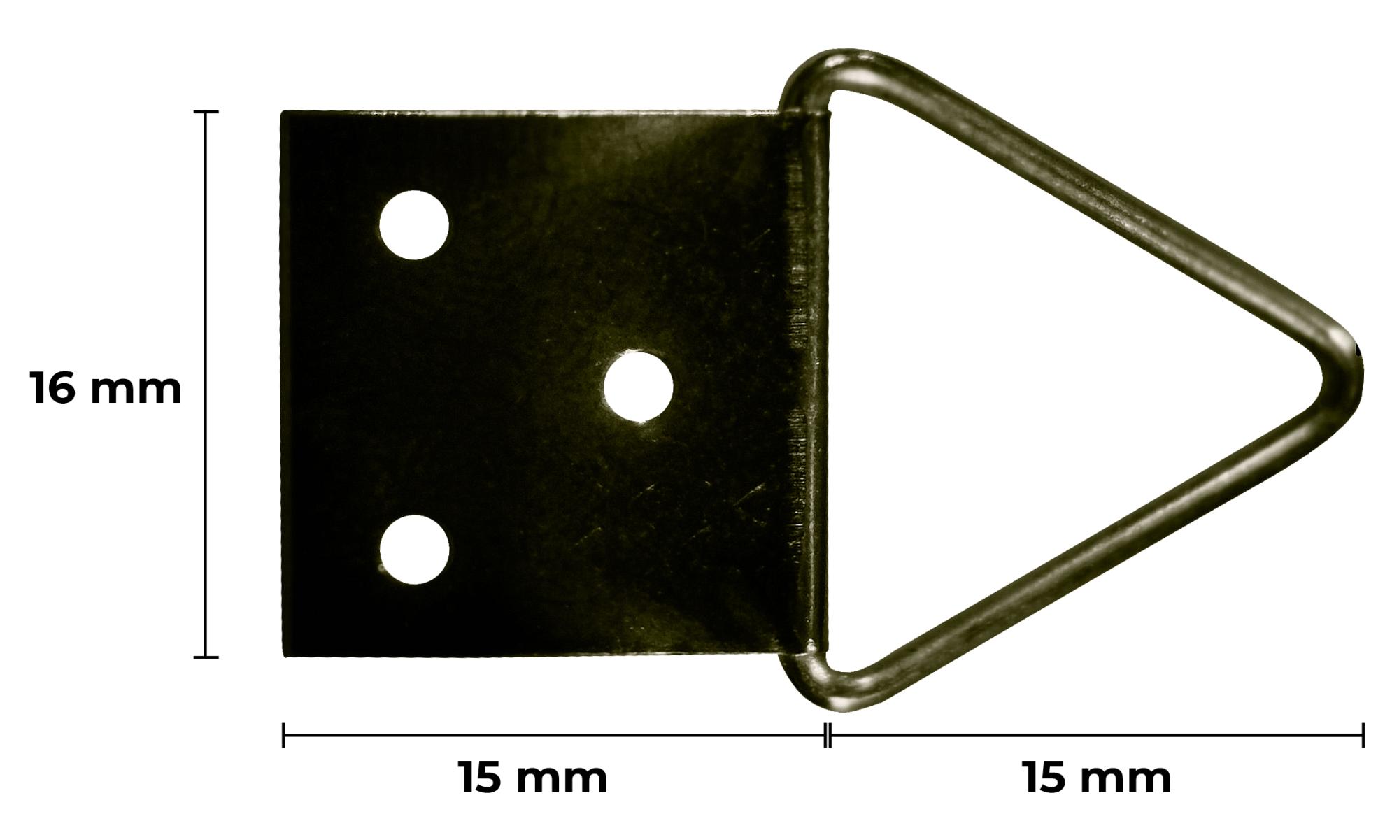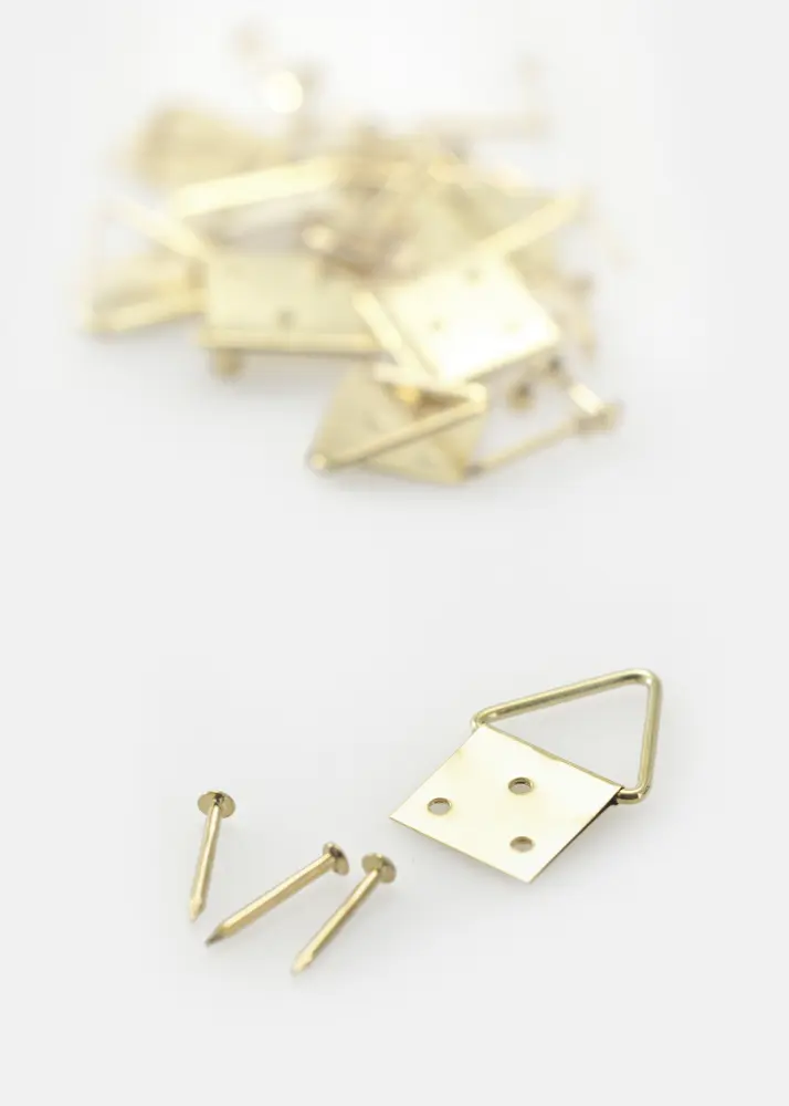 Triangelhängare i mässing. Spikas fast på ramens baksida. Kan användas som ett hänge eller två hängen om du vill använda taveltråd. Det här hänget passar utmärkt för lite större tavlor (maxmått: 60x90 cm)