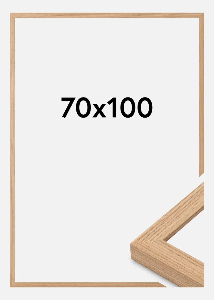 Den här stilrena fotoramen i ekfärgad design är perfekt för att framhäva dina favoritmotiv. Med en storlek på 70x100 cm passar den utmärkt för större bilder och affischer, vilket gör den till ett utmärkt val för att skapa en iögonfallande väggdekoration. Den ljusa ekimitationen ger en varm och naturlig känsla, medan den diskreta trästrukturen och den lätta ådringen efterliknar äkta ek på ett övertygande sätt.