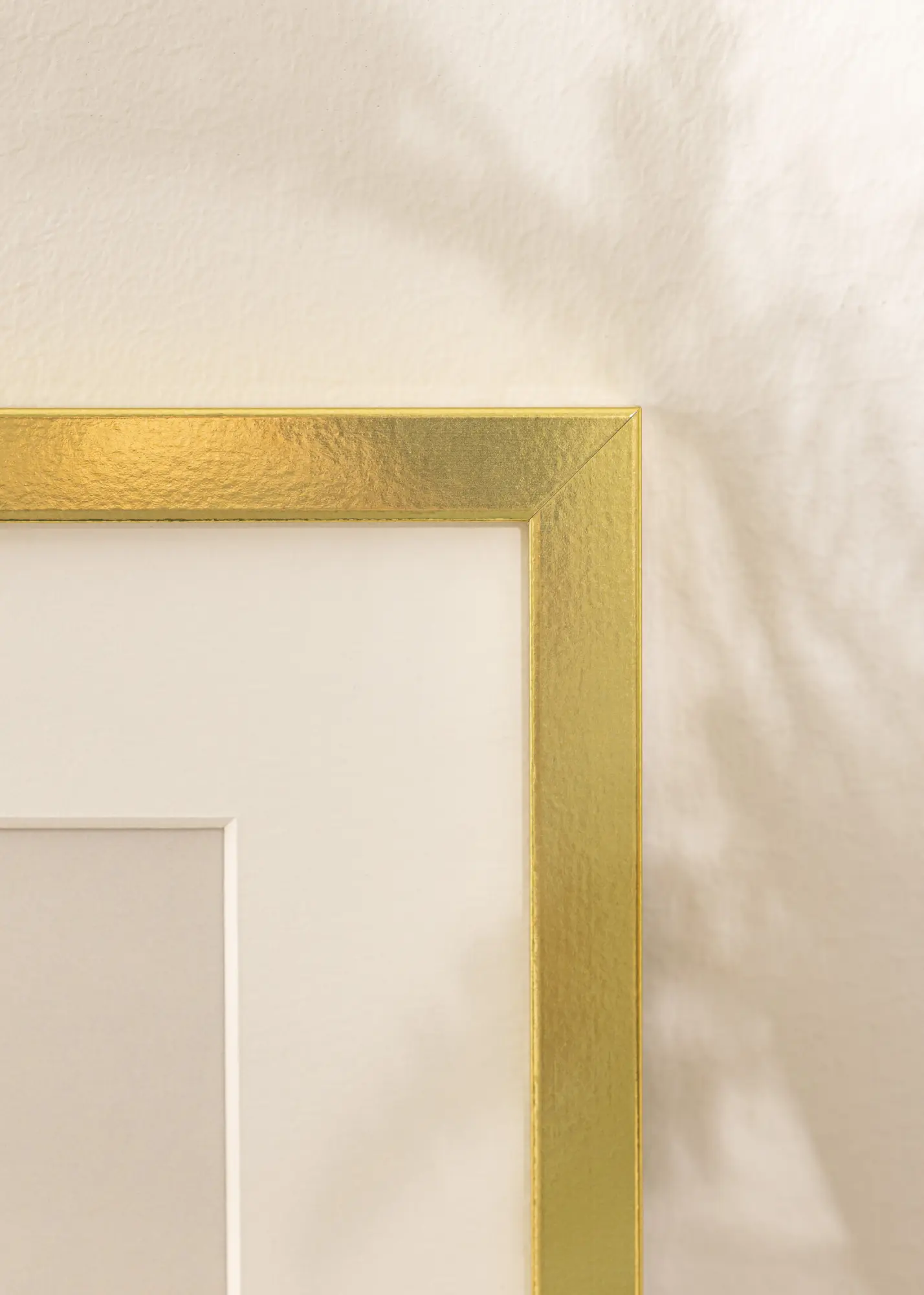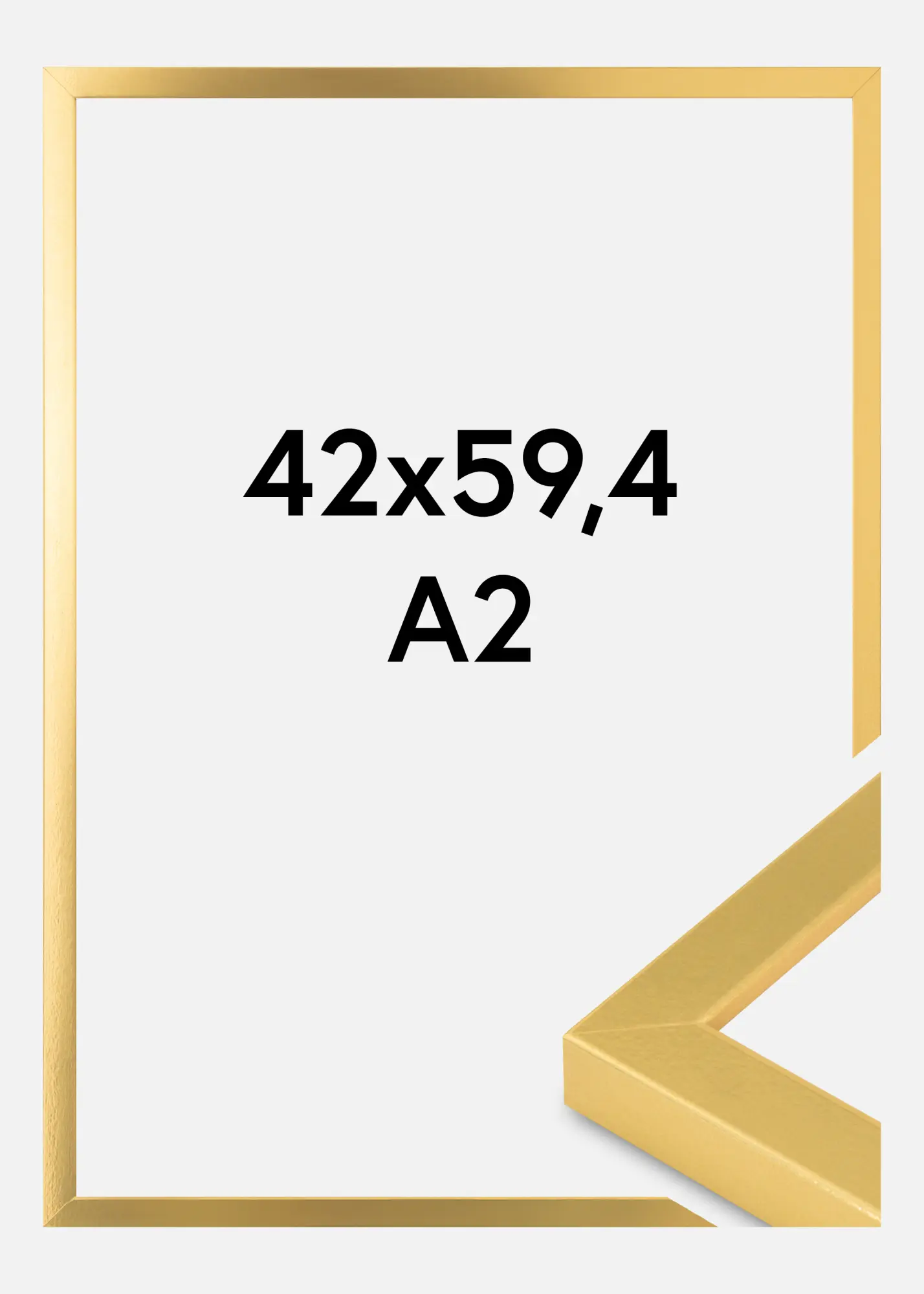 Uppgradera ditt hem med denna guldfärgade fotoram som passar perfekt för motiv i storleken 42x59,4 cm (A2). Denna tavelram är tillverkad av trä och har en elegant och modern design som utstrålar lyx. Med en stilren profil och en subtil glans på ytan, ger den ett exklusivt och sofistikerat uttryck till dina bilder eller konstverk.