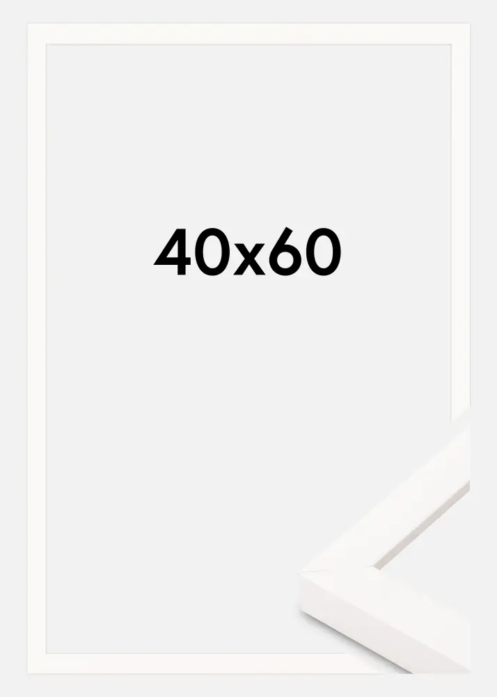 Den här vita fotoramen är perfekt för att framhäva dina favoritmotiv i storleken 40x60 cm. Med sin eleganta och minimalistiska design passar den in i de flesta inredningsstilar. Ramens tunna, släta profil ger ett stilrent intryck och den matta ytan med jämn finish bidrar till en sofistikerad känsla.