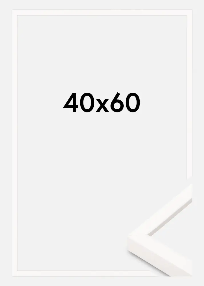 Den här vita fotoramen är perfekt för att framhäva dina favoritmotiv i storleken 40x60 cm. Med sin eleganta och minimalistiska design passar den in i de flesta inredningsstilar. Ramens tunna, släta profil ger ett stilrent intryck och den matta ytan med jämn finish bidrar till en sofistikerad känsla. Denna tavelram är tillverkad av trä, vilket ger en robust och hållbar konstruktion.