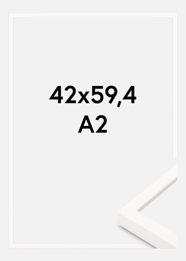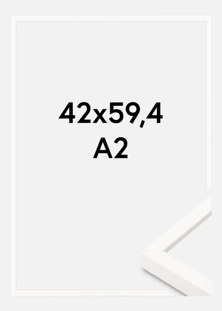 Denna stilrena fotoram i vit färg är perfekt för att framhäva dina favoritmotiv. Med en storlek på 42x59,4 cm passar den utmärkt för A2-format, vilket gör den idealisk för större bilder eller affischer. Den eleganta och minimalistiska designen med en tunn, slät profil ger ett stilrent intryck som smälter in i de flesta inredningar.
