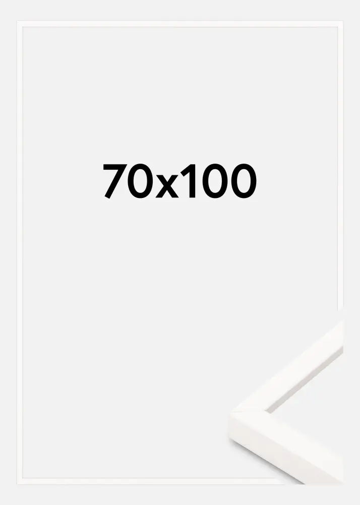 Den här vita fotoramen är perfekt för att framhäva dina favoritmotiv i storleken 70x100 cm. Med sin eleganta och minimalistiska design passar den in i de flesta inredningsstilar. Den tunna, släta profilen ger ett stilrent intryck och låter ditt motiv stå i centrum. Ytan på tavelramen är matt och har en jämn finish, vilket bidrar till dess sofistikerade utseende.