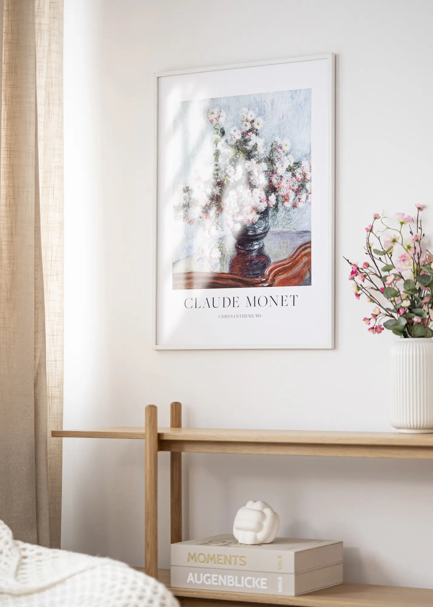 Ramen är tillverkad av trä och har en ramlist som är 12 mm bred och ett djup på 16 mm. Detta ger en stabil och robust känsla samtidigt som den behåller sin elegans. Den är utrustad med metallhängare på baksidan, vilket gör det enkelt att hänga upp ramen både horisontellt och vertikalt, beroende på vad som passar ditt motiv bäst.