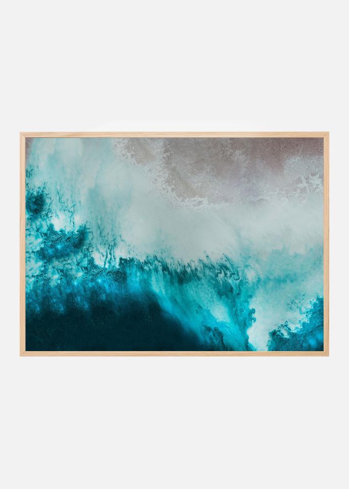 Denna poster bjuder på en fascinerande vy av ett stormande hav, där dynamiken i vattnets rörelse fångas på ett uttrycksfullt sätt. Genom en palett av djupa blå toner och skiftande turkosa nyanser, förmedlar bilden en känsla av både kraft och lugn. Denna print är perfekt för att tillföra en vägg liv och energi, samtidigt som den erbjuder ett harmoniskt inslag i rummet. Affischen är ett måste för den som älskar havets oändliga och mystiska skönhet.