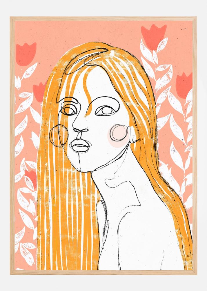 Njut av denna unika konstprint som karakteriseras av dess graciösa linjer och målar fram bilden av kvinnan med ett minimalistiskt tillvägagångssätt. Motivet domineras av avslappnade nyanser av terrakotta, vit och cerise, ackompanjerat av accentueringar i svart för att definiera former och konturer. En stilren illustration som passar utmärkt i en modern eller minimalistisk inredning. Komplettera din väggkonstsamling med en touch av abstrakt skönhet och en palett som smälter samman nutida tendenser med tidlös elegans.