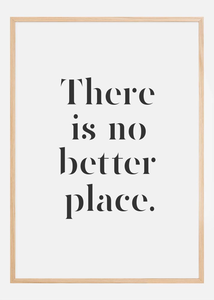 Upptäck vår minimalistiska och stilrena poster som förmedlar en känsla av lugn och hemtrevnad med dess enkla budskap "There is no better place". Denna moderna print är perfekt för den som uppskattar skandinavisk design och tydliga, men kraftfulla budskap i sin heminredning. Motivet, som är begränsat till en klassisk svart text på en vit bakgrund, blir en tidlös inredningsdetalj som passar i såväl ett modernt som ett mer traditionellt hem.