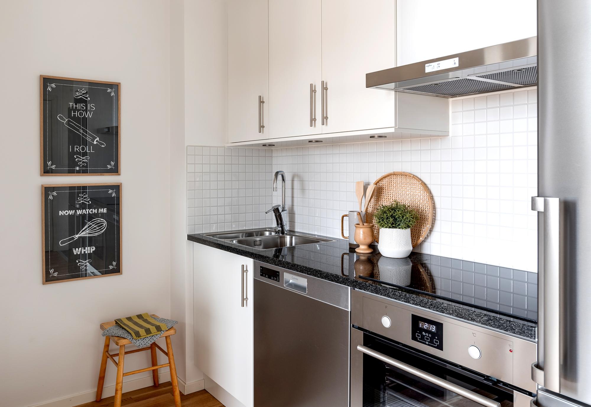 Här är en affisch som är som gjord för den som ständigt står med kaveln i högsta hugg, en fin present att ge till vännen som alltid bakar nått extra gott till fikat. Det vita typsnittet och illustrationerna mot den svarta bakgrunden ger postern en känsla av skoltavla och det stilrena trycket gör att den passar in i alla inredningsstilar. Komplettera affischen med en svart tavelram som förstärker utseendet av en svart tavla och låter motivet tala.