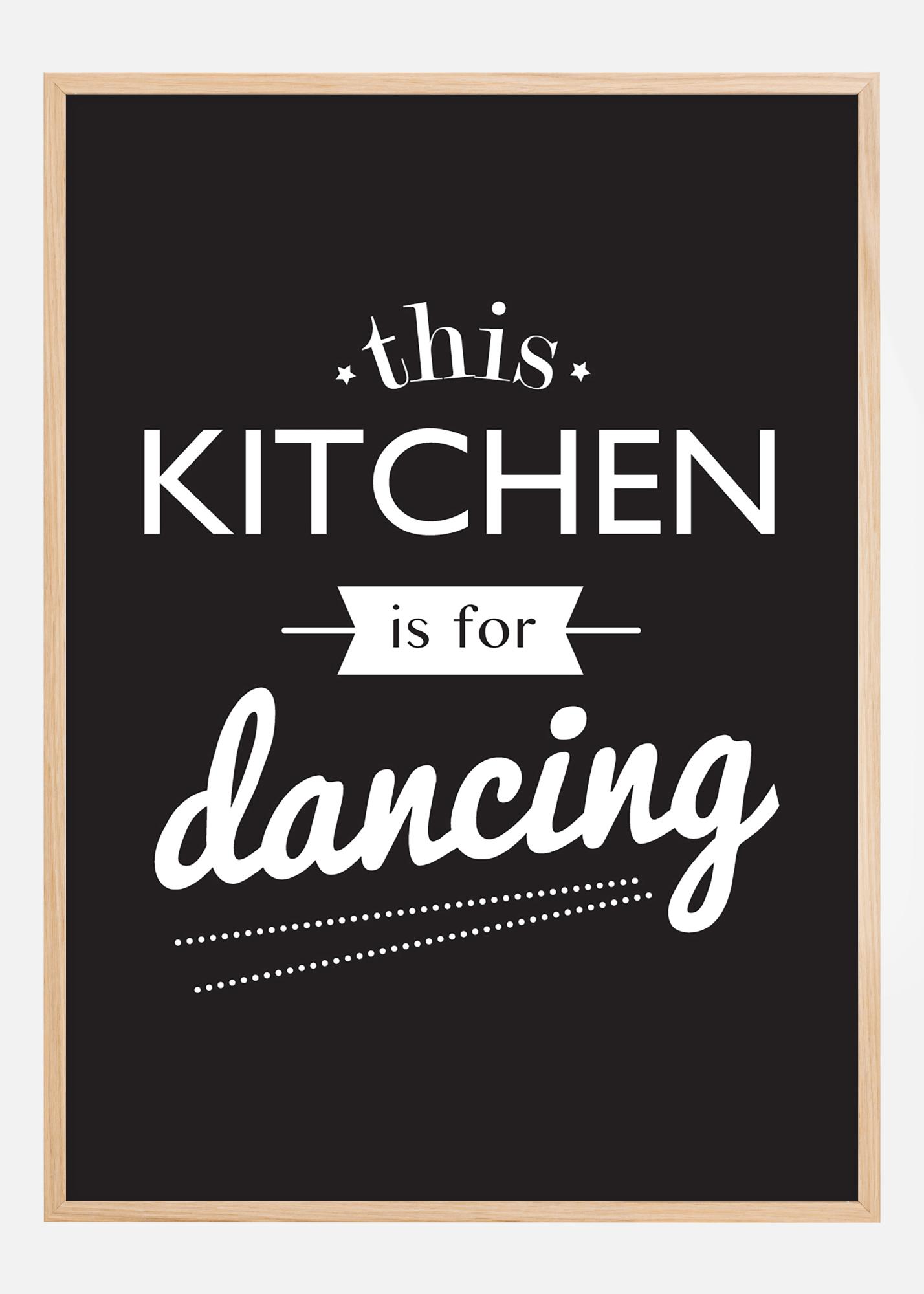 Alla vet att det är köket som utgör hemmets hjärta. Det är där vänner och familj samlas för kalas, fest och mysiga helgmiddagar. Dessutom är de allra flesta köksgolv ultimata för vilda dansstunder! Denna tjusiga poster tillför en härlig känsla till ditt kök och uppmuntrar dig när du måste ta hand om tråkig disk. This Kitchen is for Dancing har en svart bakgrund och ett vitt tryck i form av former och mönster tillsammans med texten ”This kitchen is for dancing”. Varje ord är tryckt med ett eget typsnitt vilket ger ett lekfullt intryck. Häng upp den som den är eller komplettera med en piffig ram. Välj mellan 6 olika format!