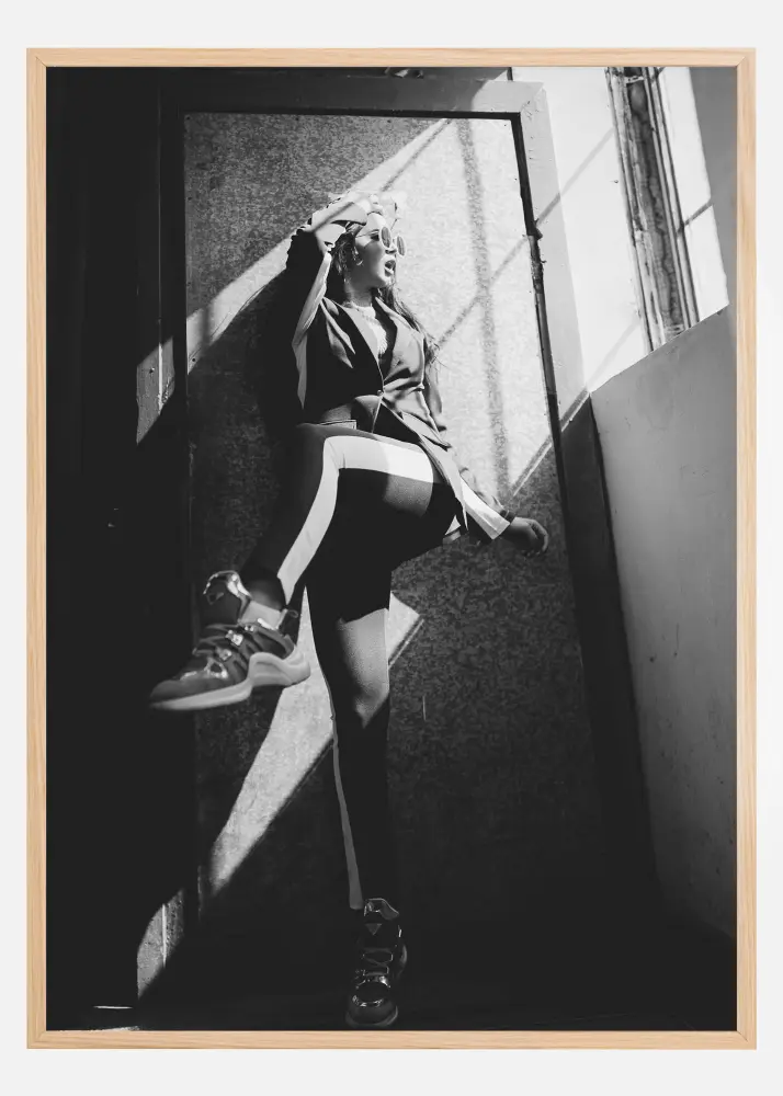 Stilfull fotografisk konst i svartvitt. En poster som genom sitt uttryck förmedlar en skön blandning av strikt och fashionabelt i kontrast till det lediga och lekfulla. Kombinera gärna med andra favoriter på en större tavelvägg.