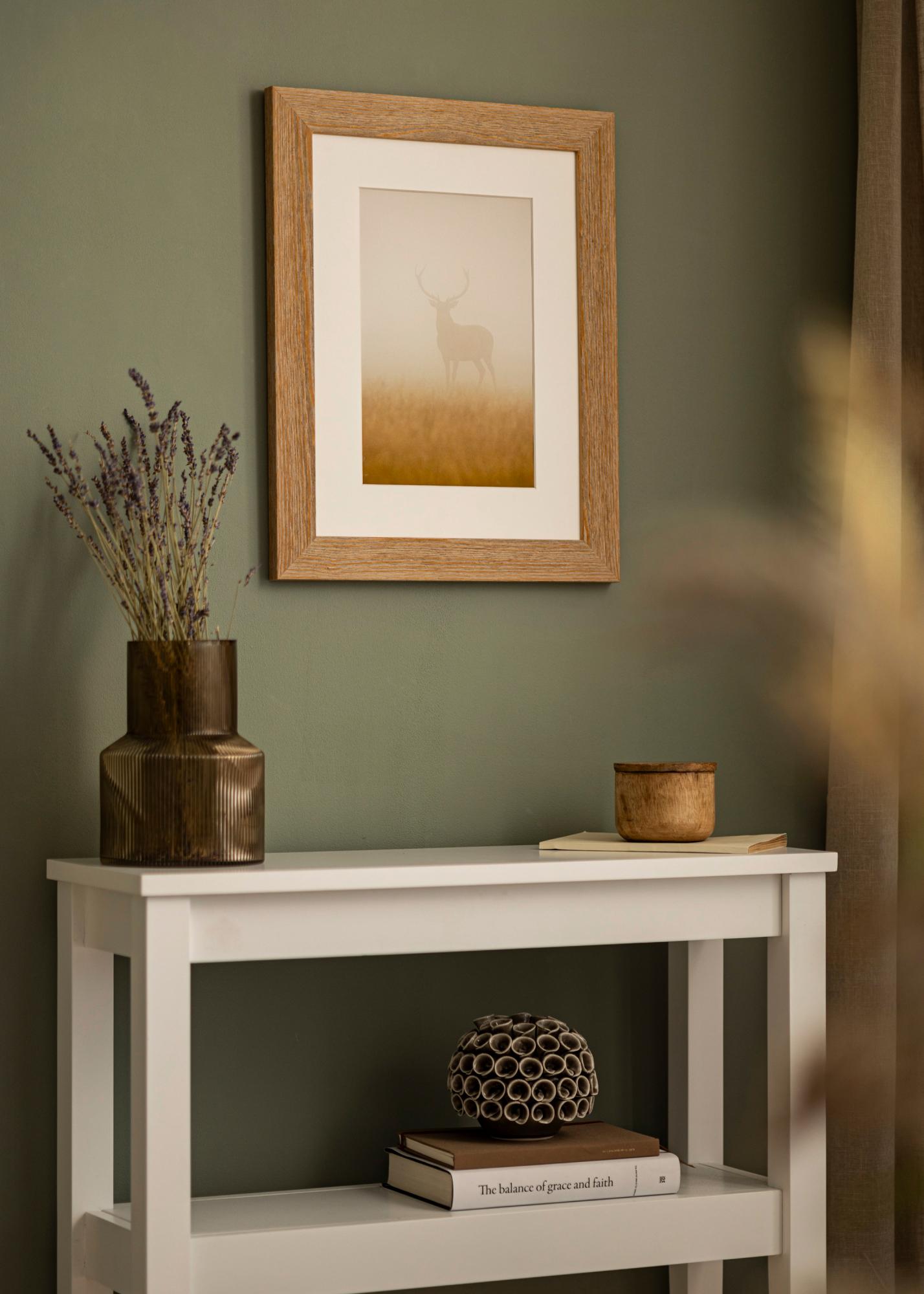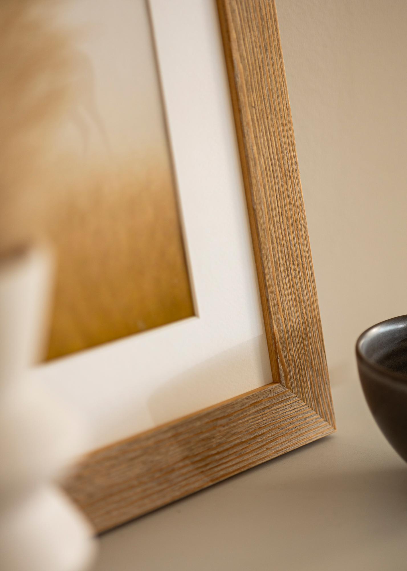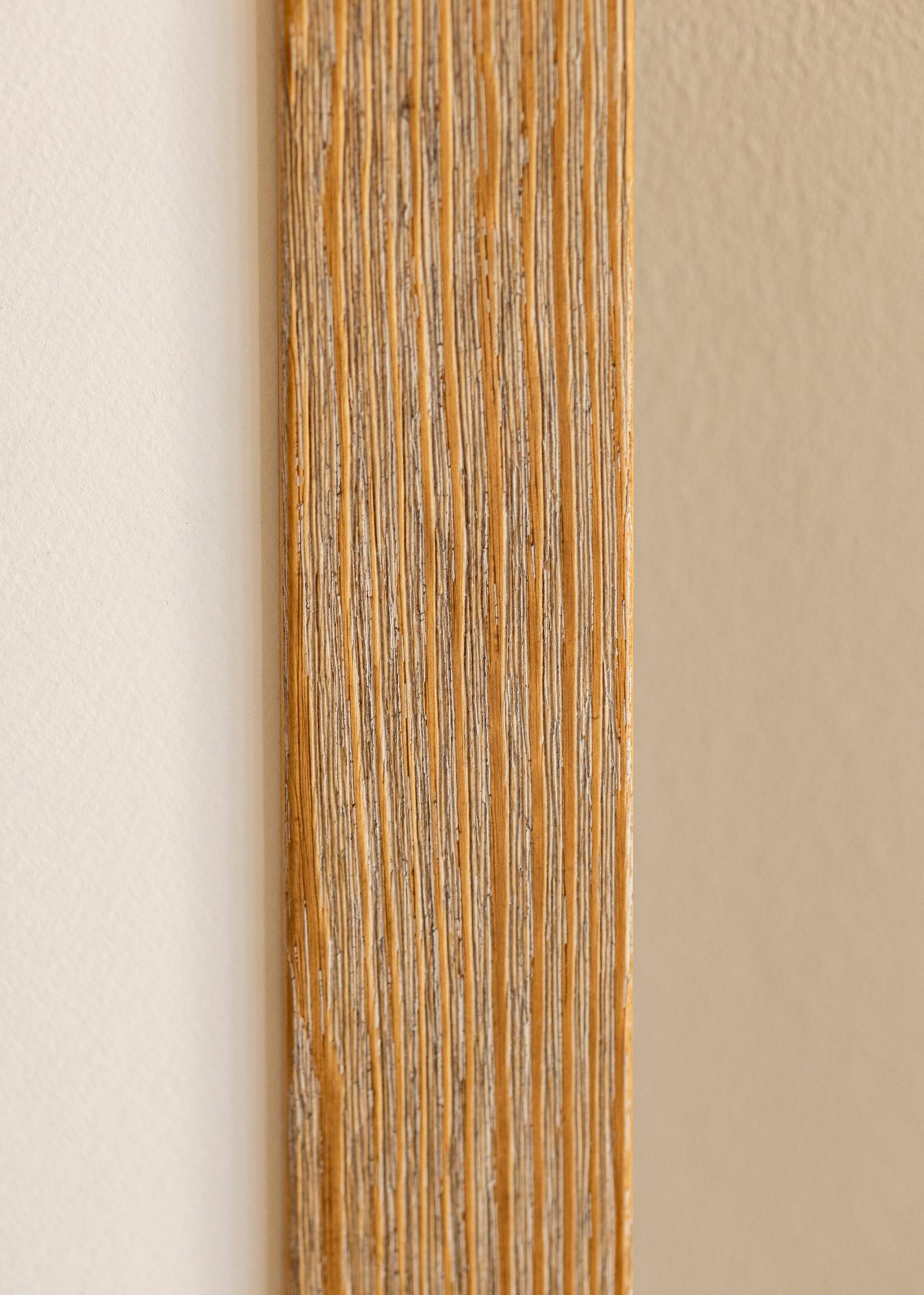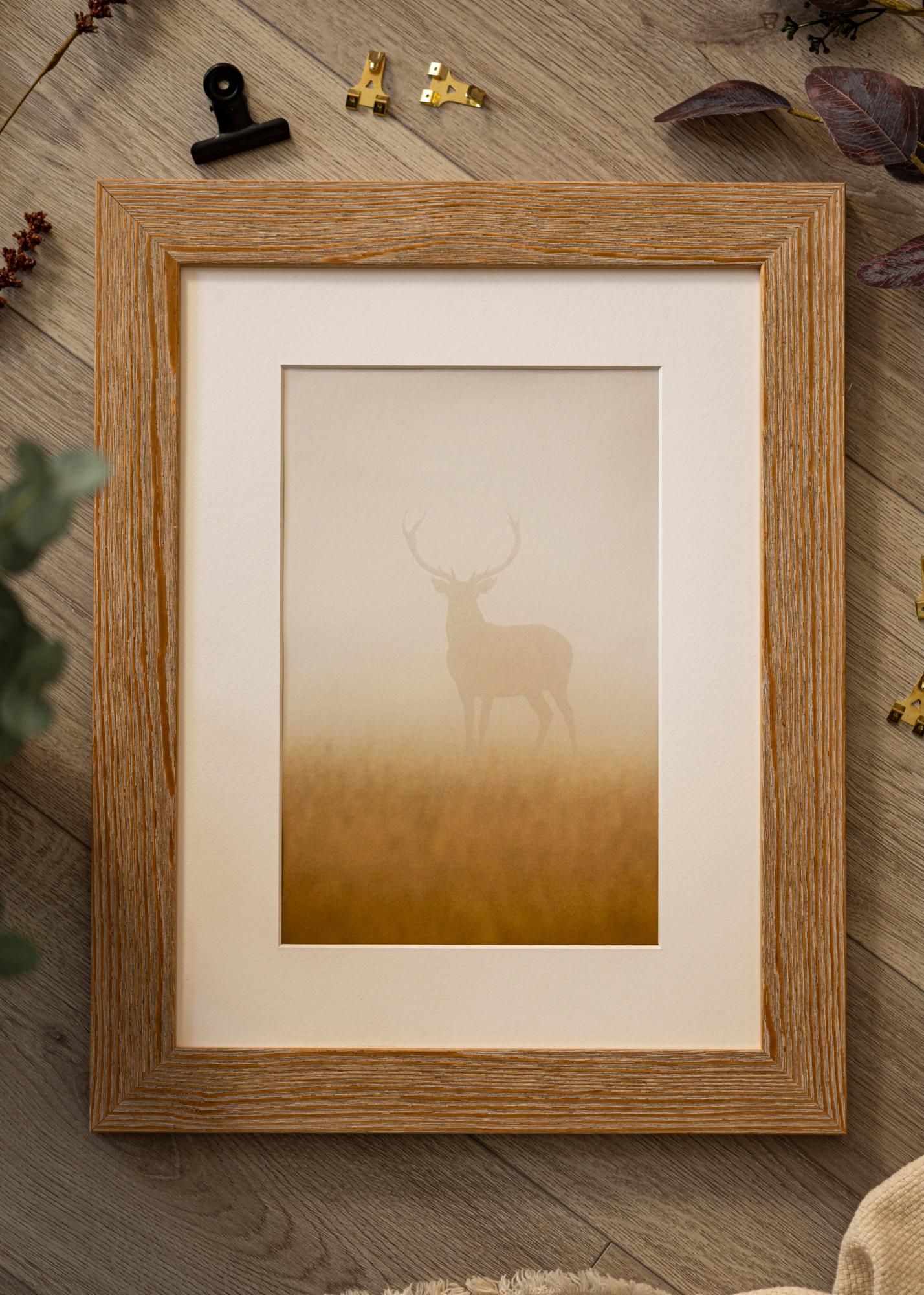 Klassisk träram med tydliga träådringar. Ger en känsla av natur och vildmarksliv.