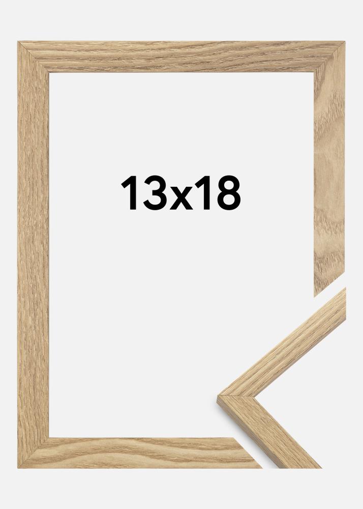 Denna tavelram är tillverkad i MDF-material och har en stilfull ekfärgad yta samt riktigt glas. Den tunna ramlisten på endast 14 mm ger ett elegant intryck. Bakstycket hålls på plats av böjbara stift, och är smidigt att lossa när du ska montera in dina bilder.