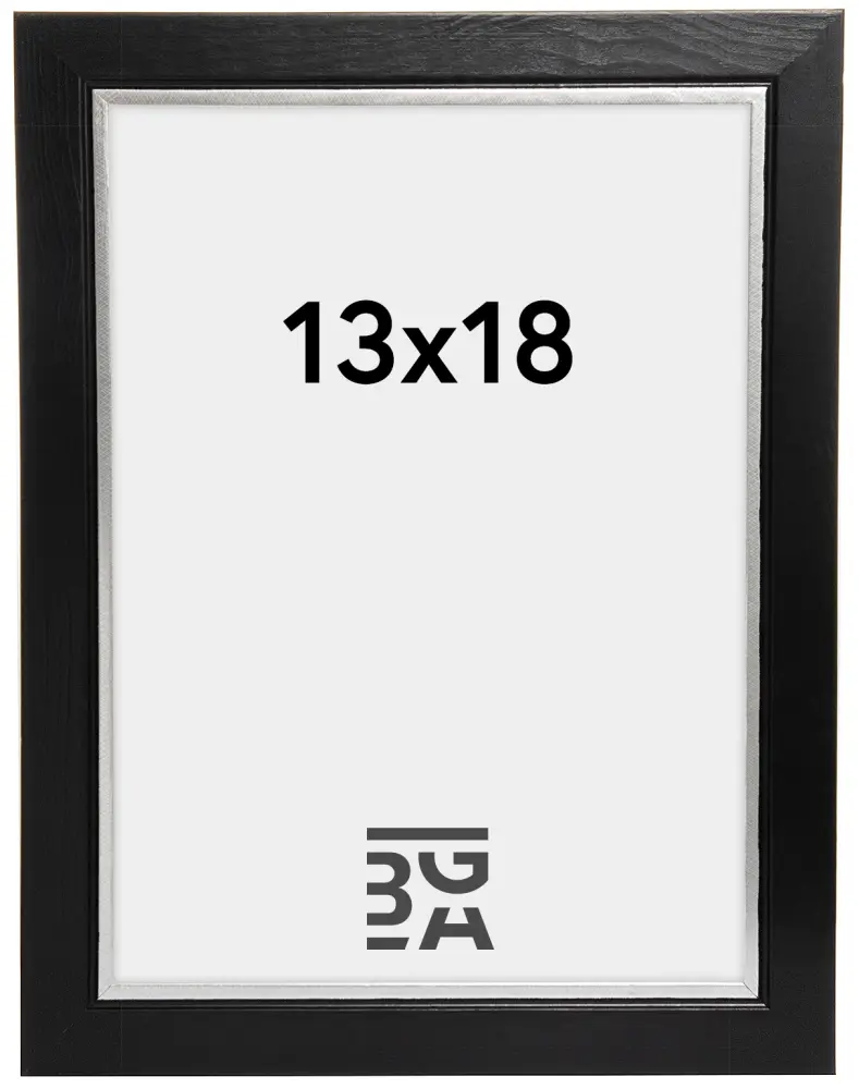 Exklusiv svart fotoram av trä med en liten extra "Twist" i form av en fin silverfärgad kant närmast motivet. Ett utmärkt val då du söker en ram som ger en extra dimension till motivet. Perfekt att placera på en tavellist för ett snyggt collage.