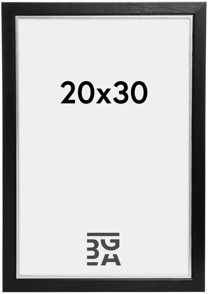 Exklusiv svart fotoram av trä med en liten extra "Twist" i form av en fin silverfärgad kant närmast motivet. Ett utmärkt val då du söker en ram som ger en extra dimension till motivet. Perfekt att placera på en tavellist för ett snyggt collage.