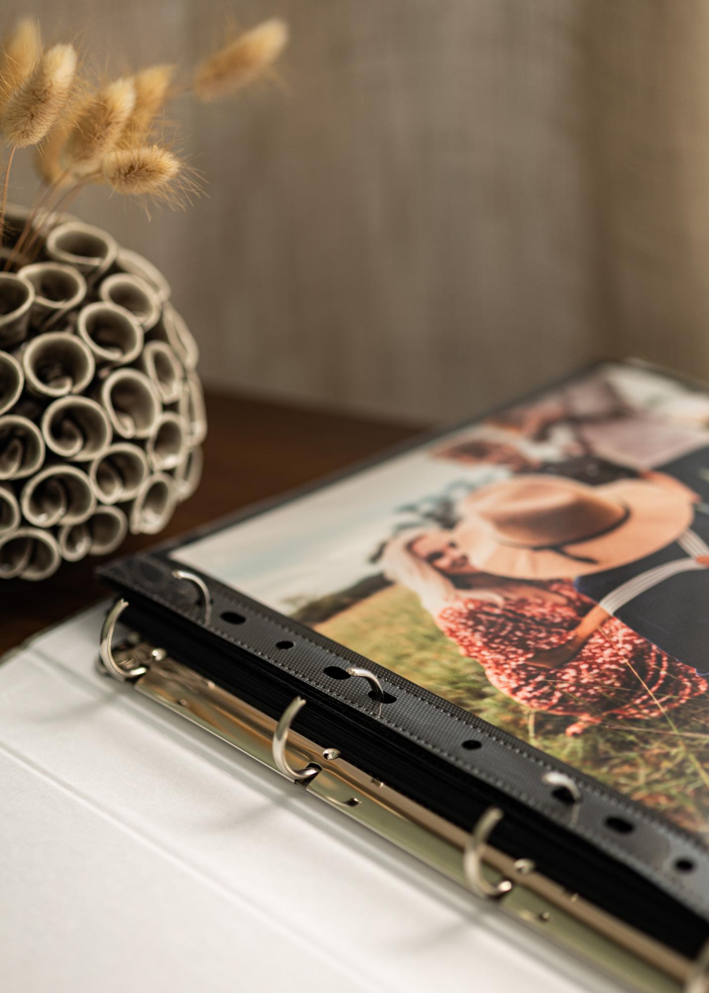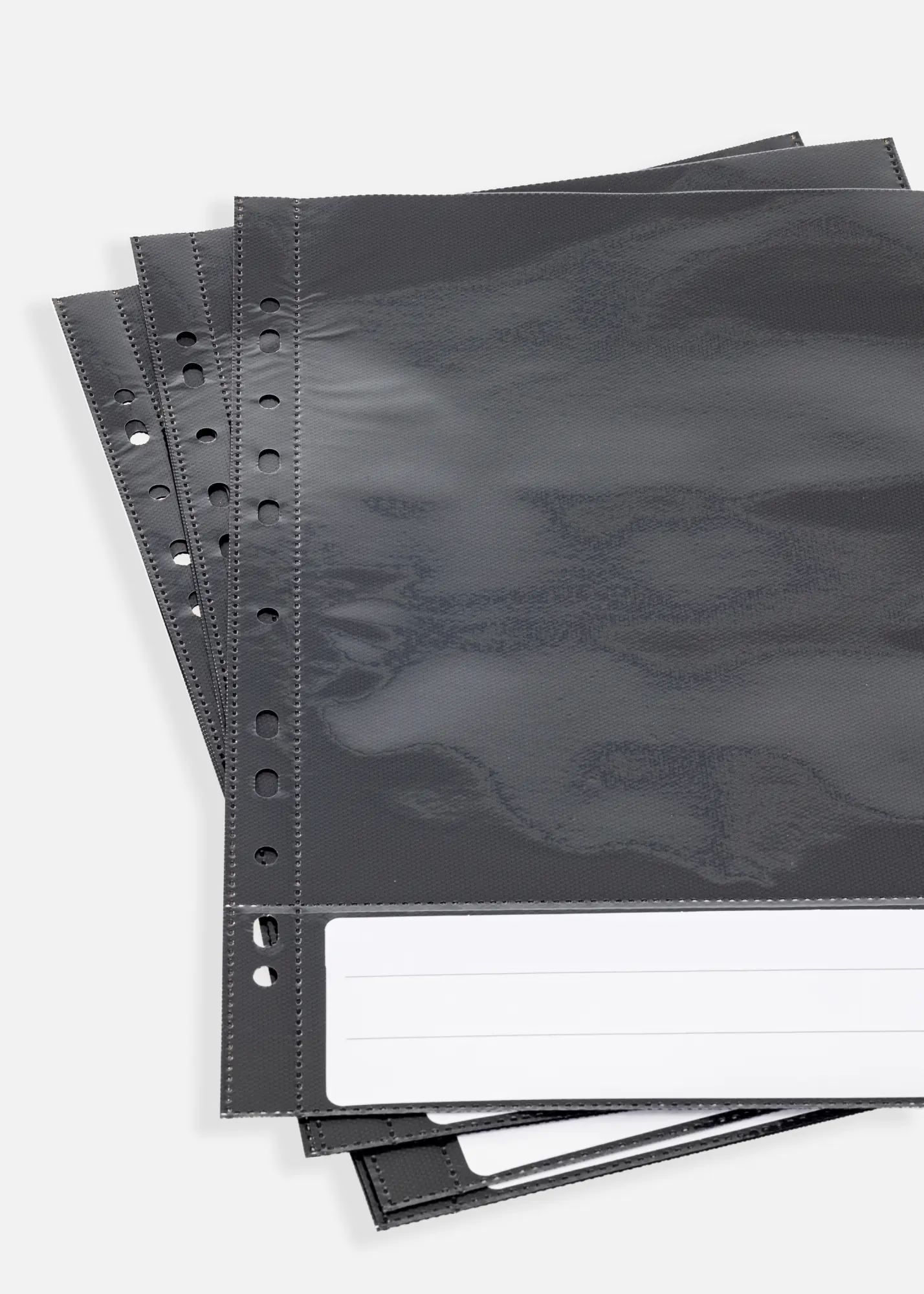 Ultimate Fotofickor 20x25 cm Stående är ett set med 5 svarta albumblad i storleken 23,5x32,5 cm. De rymmer totalt 10 stående bilder i formatet 20x25 cm och har även plats för egna anteckningar, perfekt för att skriva datum, namn eller andra minnesvärda detaljer. En praktisk lösning för att organisera och bevara dina foton på ett stilrent sätt.