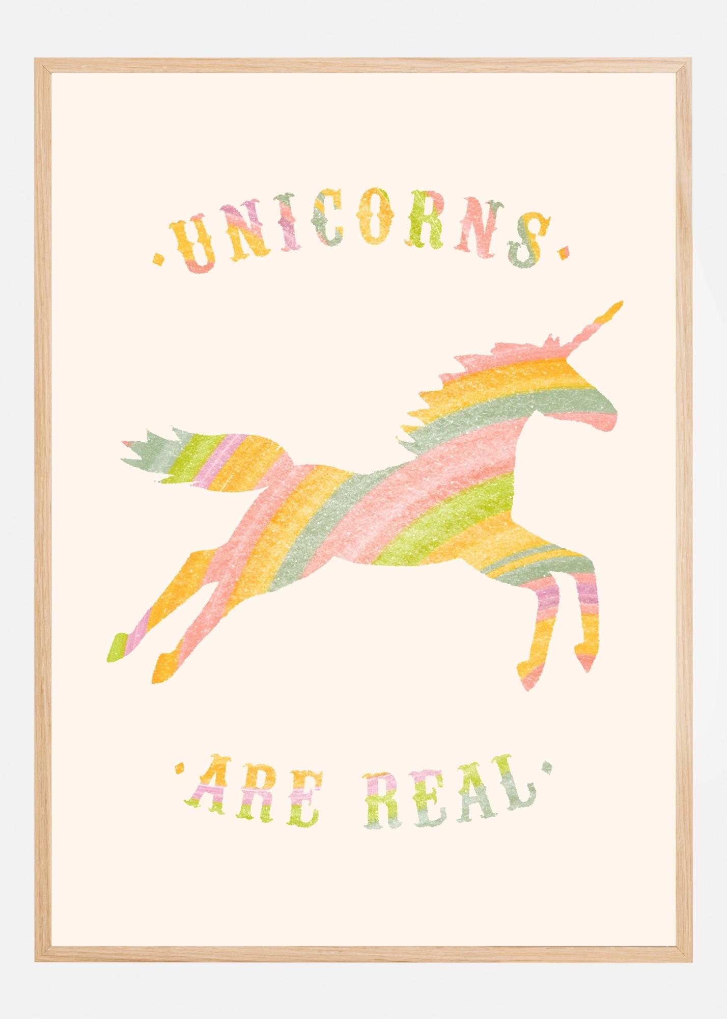 Upplev magin och färgglädjen i ditt rum med denna gnistrande affisch som hyllar mytiska varelser; en vacker, lekfull representation av en enhörning i pastellfärger. Texten "UNICORNS ARE REAL" kapslar in både drömmar och fantasi, och bjuder in till en värld där det mytiska blir del av vår verklighet. Denna poster adderar en touch av barnslig förtjusning och optimism till varje hem eller arbetsplats.