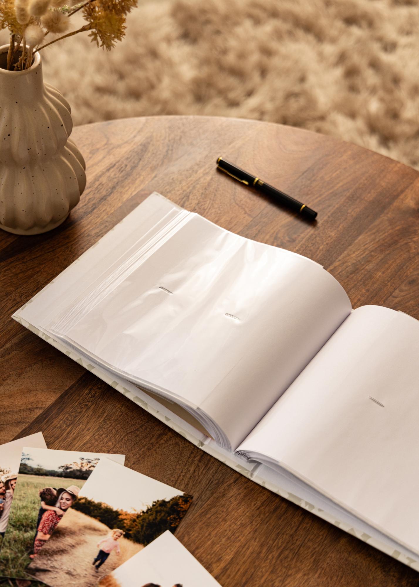 Albumets pärmar är vita, vilket ger en tidlös och klassisk känsla som passar in i alla hem. Bildorienteringen är liggande, vilket ger en harmonisk presentation av dina fotografier. De vita sidorna skapar en ren bakgrund som framhäver varje bild på bästa sätt.