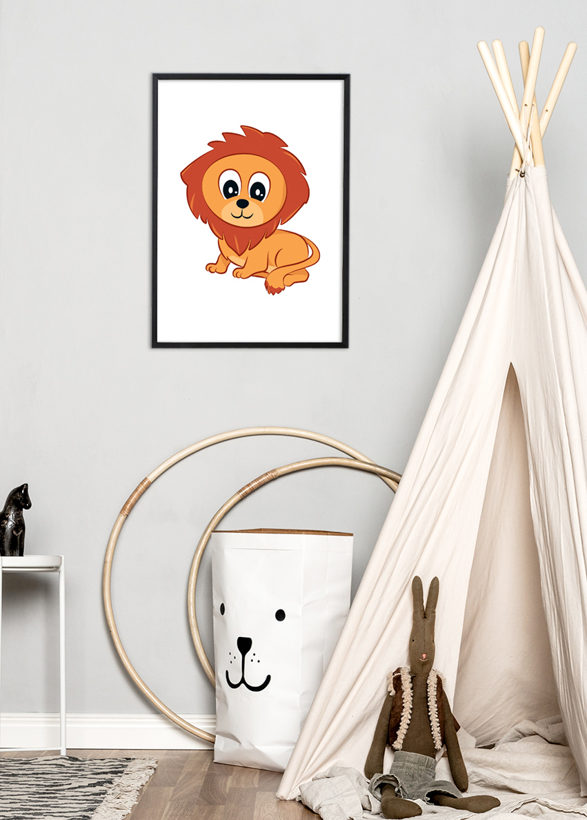 Lejonet är ett väldigt spännande djur för det har en stor, len man och det kan ryta jättehögt! Den här postern har motiv av ett sött litet lejon med snälla ögon och lång svans. Eftersom den finns i flera olika storlekar hittar du enkelt en som passar på väggen eller på nattduksbordet i barnrummet hemma hos er. Komplettera gärna med en svart eller vit ram för att framhäva motivet.