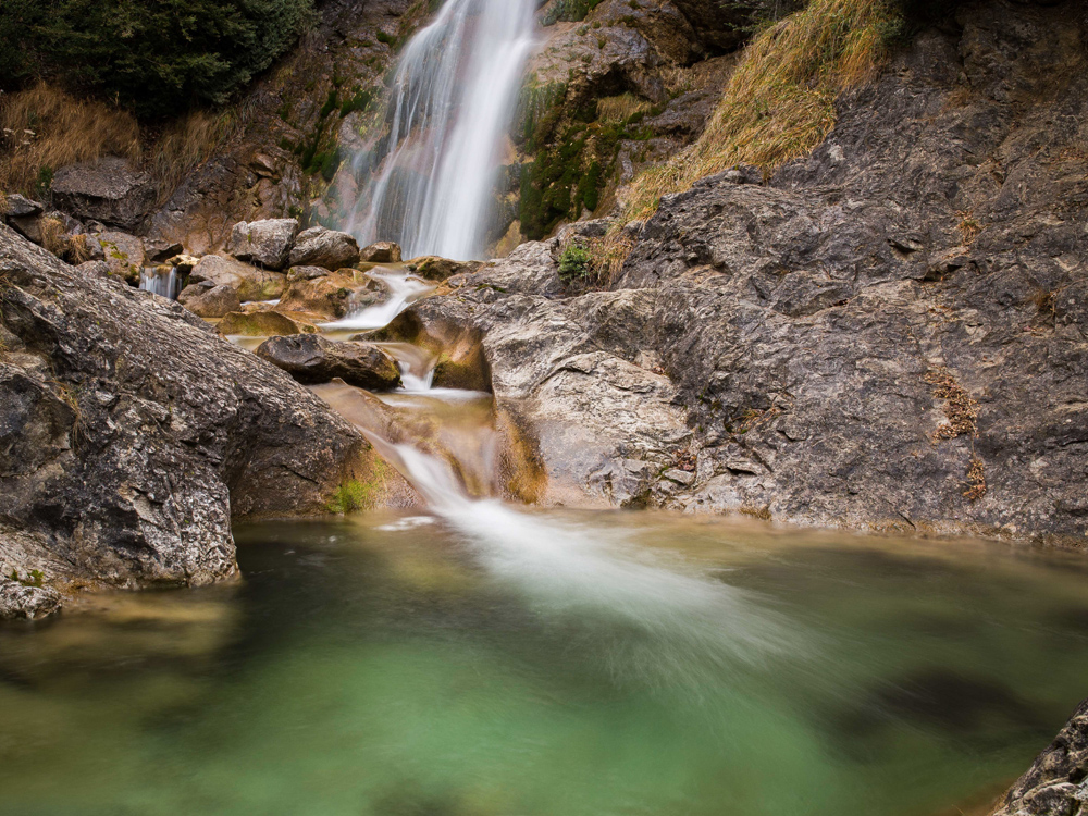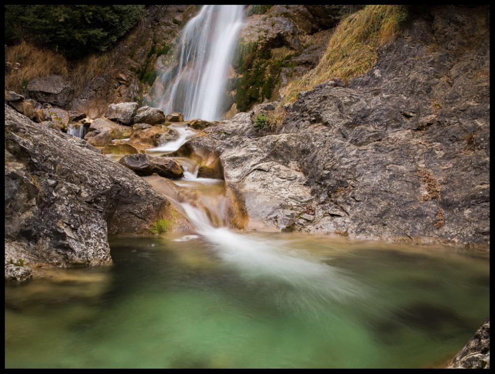 Vacker och dramatisk bild på ett vattenfall där fotografiet visar åns ständigt nötande effekt på berget. Postern lyfts av det mjuka vita vattnet som rör sig genom den karga miljön. De bruna, gråa och gröna murriga nyanserna ger en dov färgskala, som gör att bilden passar in i alla inredningar. Det finns många möjliga val av tavelram att rama in med för att matcha affischen till övrig dekor.