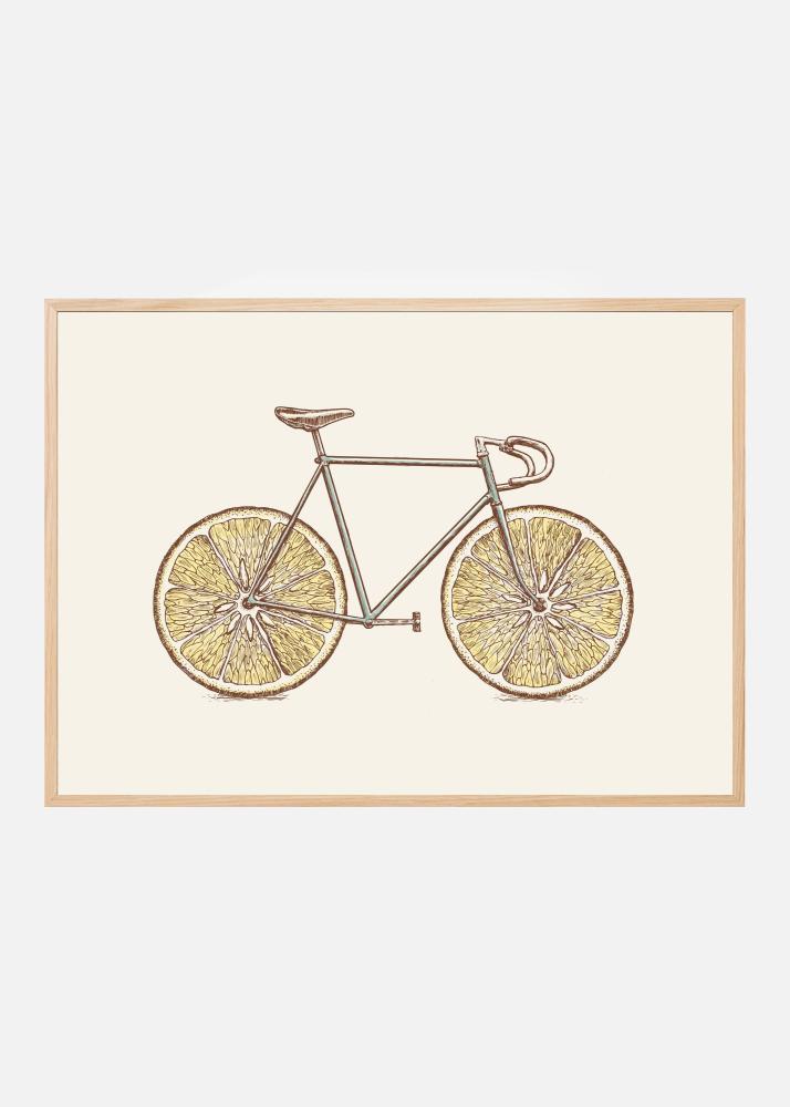 Denna unika och originella poster kommer att tillföra en kreativ twist till din väggdekor. Motivet framställer en klassisk cykel där hjulen har fått en uppfriskande vändning och formgivits som skivor av citron, vilket ger en lekfull och surrealistisk känsla. Denna print är perfekt för de som uppskattar humor och konstnärlig originalitet i sin inredning, och tillför en charmig accent till såväl moderna som retroinspirerade rum.