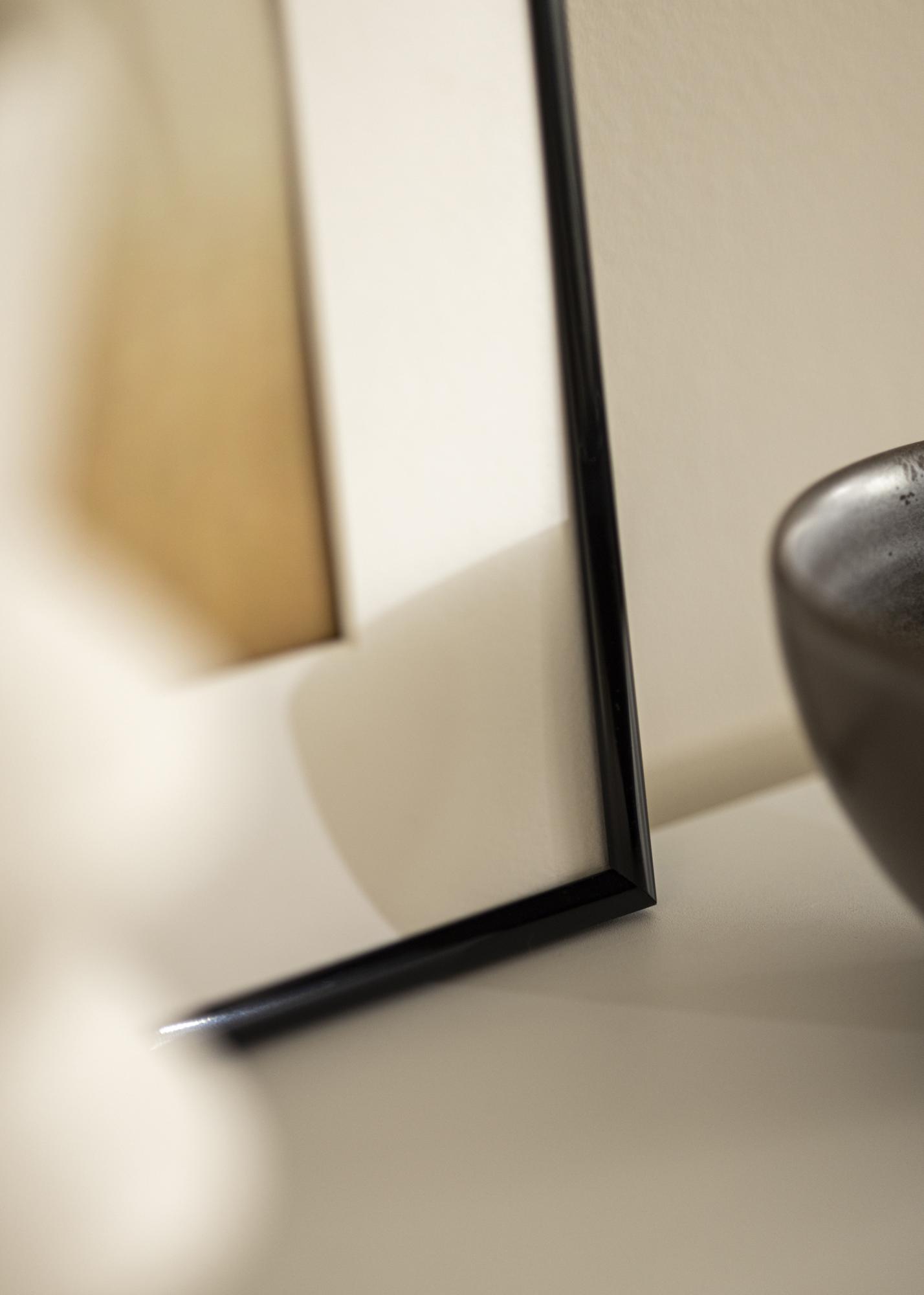 Ge dina väggar en elegant touch med denna stilrena svarta fotoram i storleken 70x100 cm. Med sin blanka finish och slanka ramlist på endast 7 mm, blir den ett sofistikerat inslag i varje rum. Denna tavelram är inte bara en visuell höjdpunkt utan också praktisk, tack vare de medföljande metallhängarna som gör det möjligt att hänga upp den både horisontellt och vertikalt.