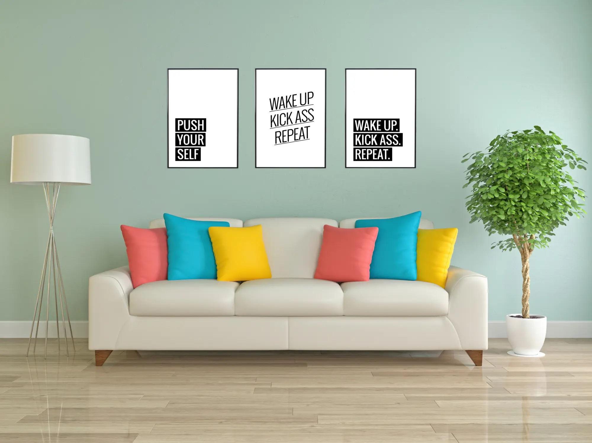 Alla kan ibland behöva lite uppmuntran i vardagen. Sätt denna sköna poster på väggen så att du ser den det första du gör när du går upp på morgonen. Affischen är vit med en något sluttande, retroinspirerad text som lyder ”Wake upp, Kick ass, Repeat.” Den svarta och vita designen går fint ihop med en färgstark ram ur vårt stora sortiment. Eftersom postern finns i 6 olika storlekar kan du vara säker på att hitta en som passar just dig.