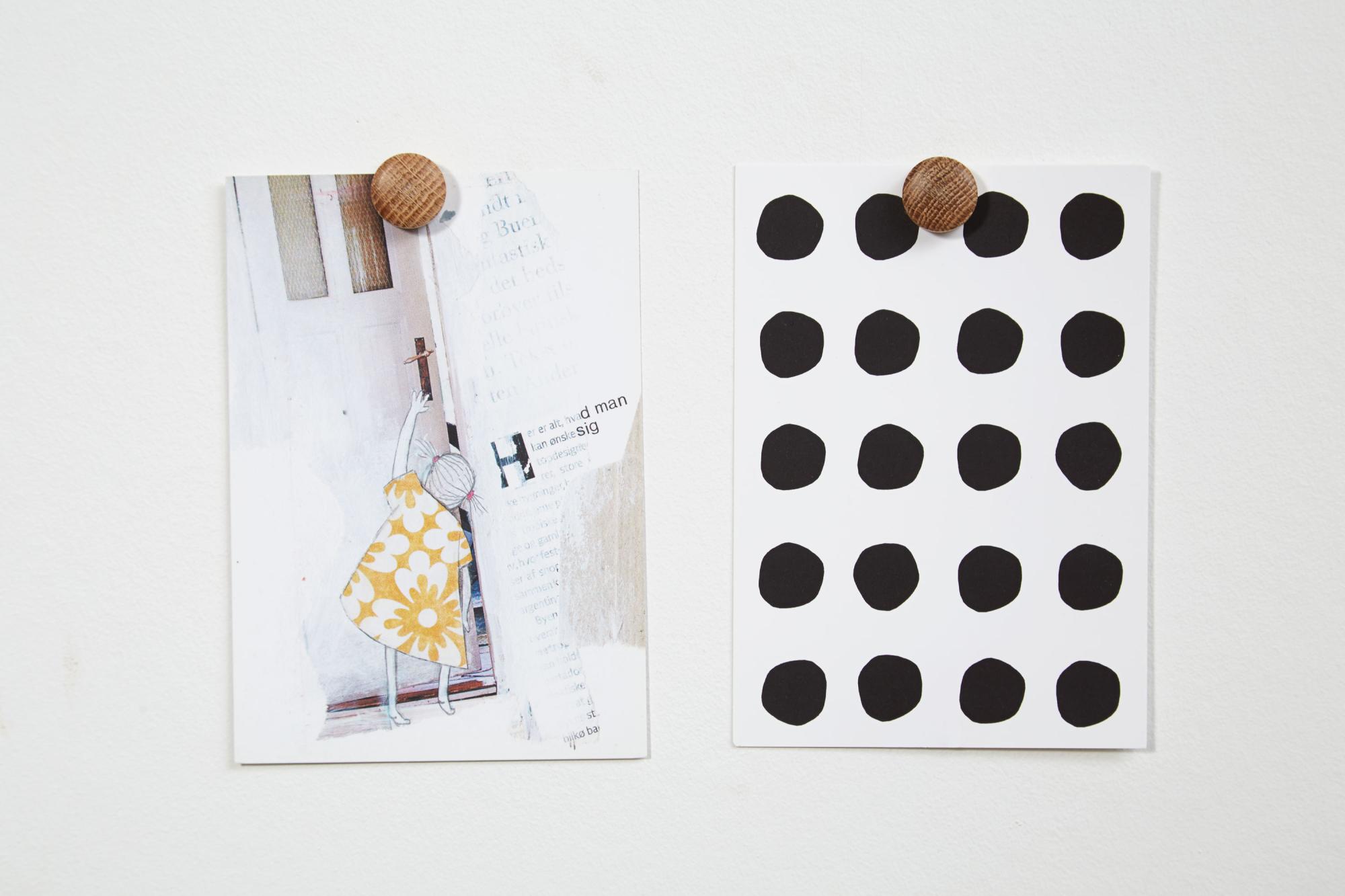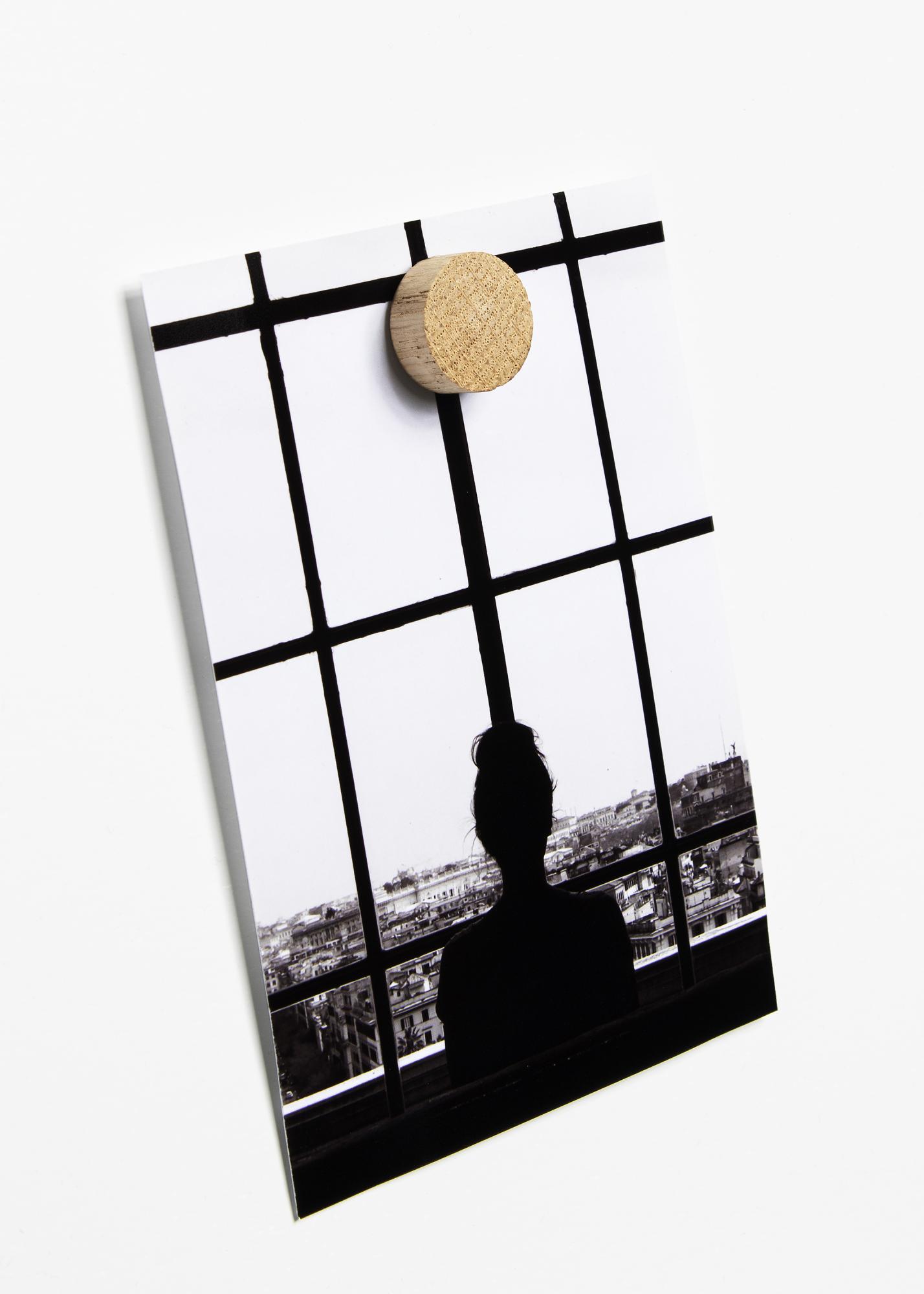 Med de här små magneterna i ek från by Wirth kan du fästa dina bilder direkt på väggen! Det blir väldigt lätt och roligt att byta ut bilder efter behag. Spika upp den magnetiska spik som finns i förpackningen antingen direkt i väggen eller med hjälp av den medföljade väggpluggen, och sedan är du redo att sätta igång!
