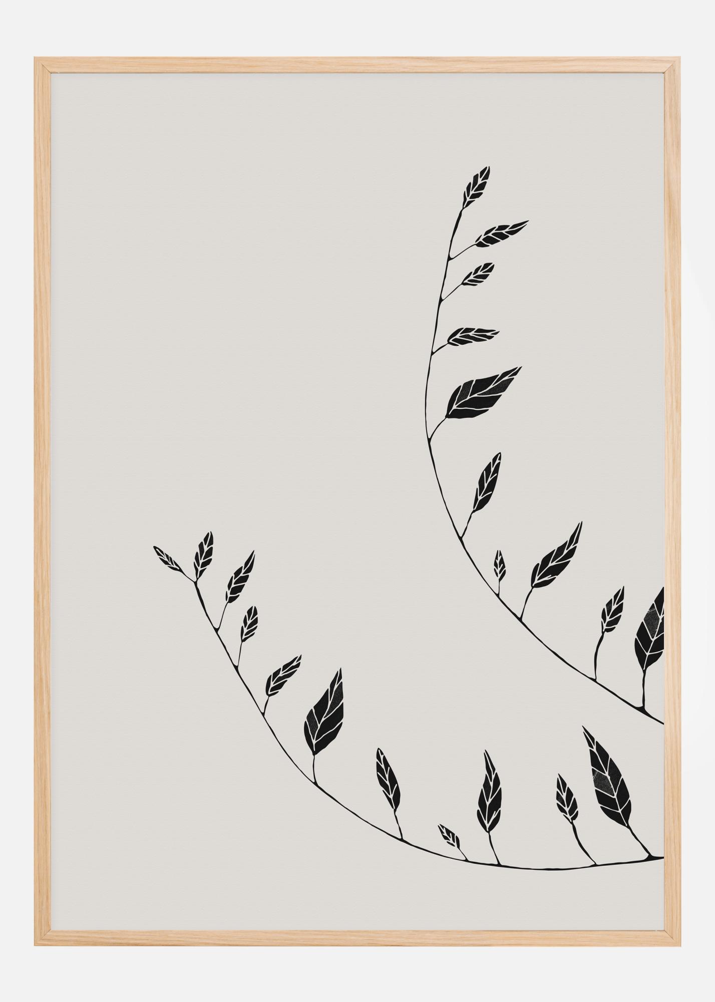 En svartvit poster med enkla grenar och blad på en vit bakgrund. Två grenar kommer in från höger och böjer sig uppåt till toppen av postern. Bladen är alla vända uppåt på ena sidan av varje gren. Böjarna ger en känsla av att växten växer när den sträcker sig upp mot en osynlig sol.