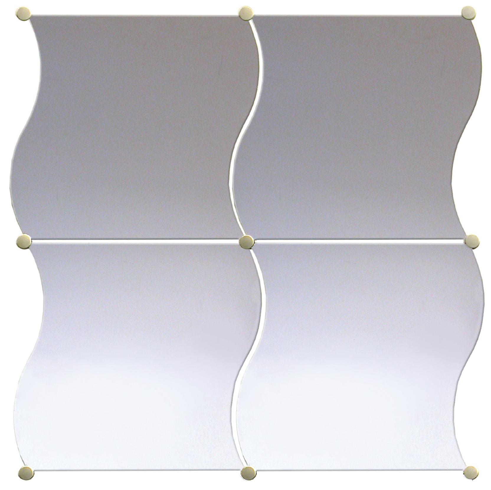 Ett perfekt paket när du vill utforma din egen spegelvägg. Vågformade spegelbitar med ett djup på 3 mm i storleken 30x30 cm, säljs i 4-pack tillsammans med 10 fästpunkter så du enkelt kan kombinera och göra så stor spegelvägg som du vill.