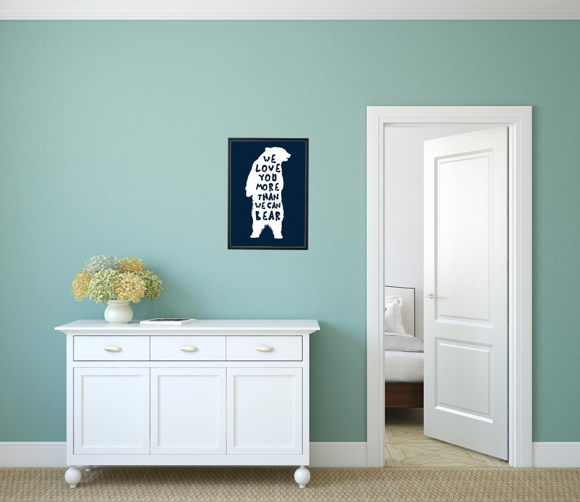 Fyndig och samtidigt kärleksfull affisch som passar den som gillar björnar lite extra bra. Det grafiska trycket är en fin present att ge till någon man vill visa sin uppskattning. Planschen har en silhuett av en björn i vitt mot en mörk bakgrund och ett konstnärligt vitt typsnitt på citatet. Rama in affischen med en snygg och stilren ram som passar in i den övriga inredningen för att skapa en helhetskänsla i miljön.