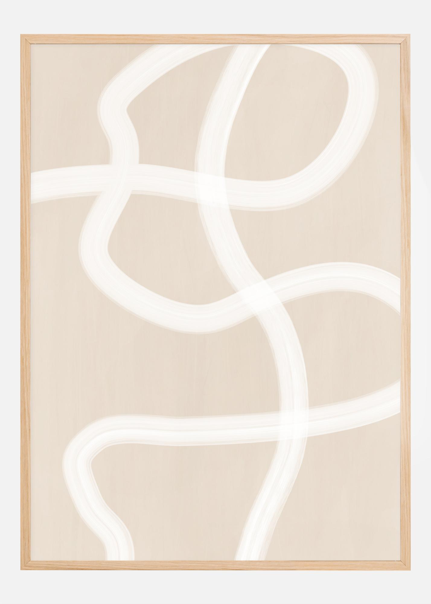 Den här posterens svepande vita penseldrag mot en varm beige bakgrund erbjuder en fängslande och samtida estetik. Dess flödande linjer och organiska former ger en känsla av rörelse och spontanitet, samtidigt som den bibehåller en avskalad och ren känsla som är typisk för modern minimalistisk design.