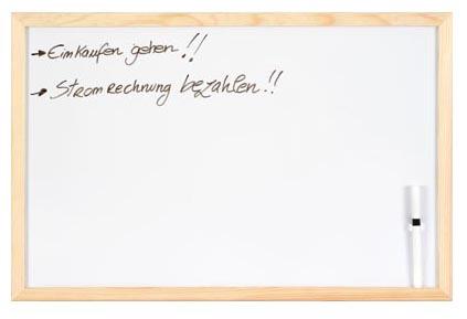 Whiteboard med en enkel träram, perfekt både på kontoret och i hallen.