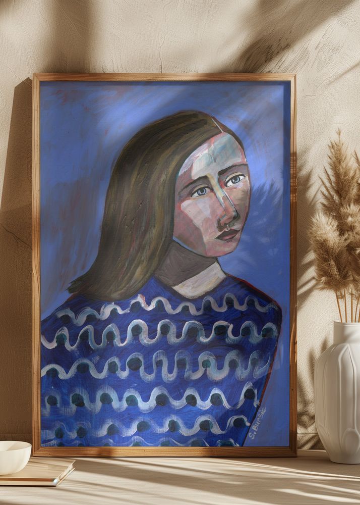https://www.bga.se/woman-in-blue-sweater-naive-portrait-figurative-poster-4