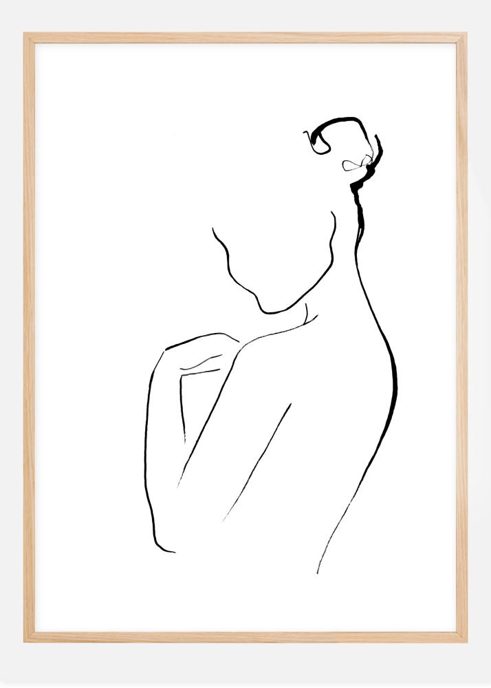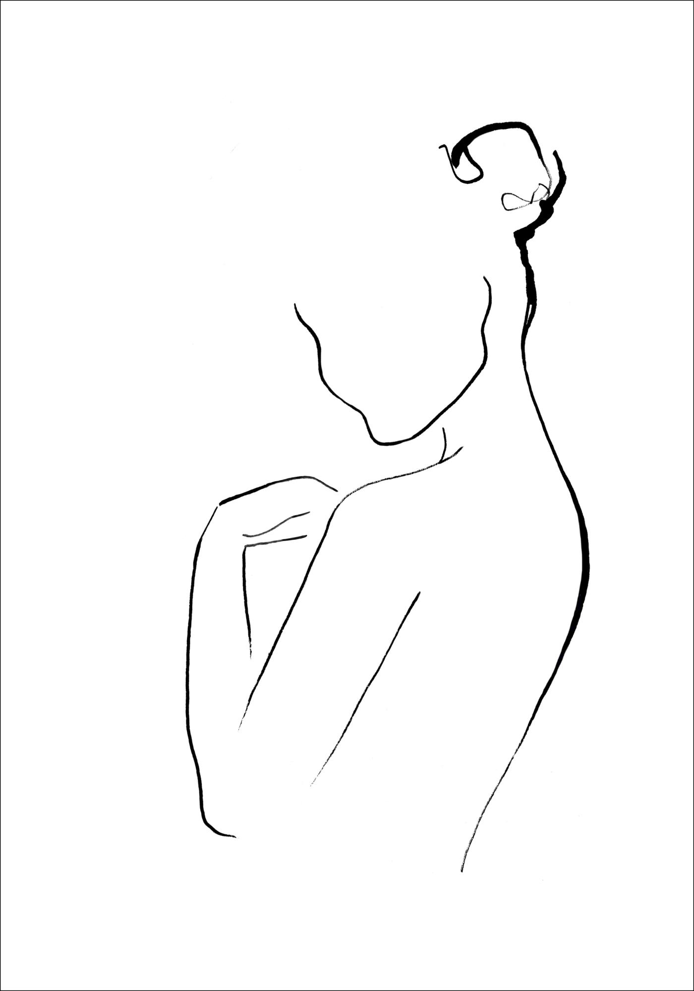 Vackert spröd linjekonst av en kvinna tecknad i tusch, skapad av konstnär Cora Eklund, Cora Konst & Illustration. En enkel och stilren poster som passar de flesta hem och inredningsstilar och som i sitt utförande är lätt att kombinera med andra favoriter på en större tavelvägg.