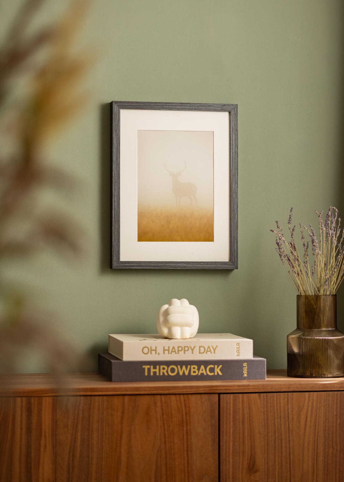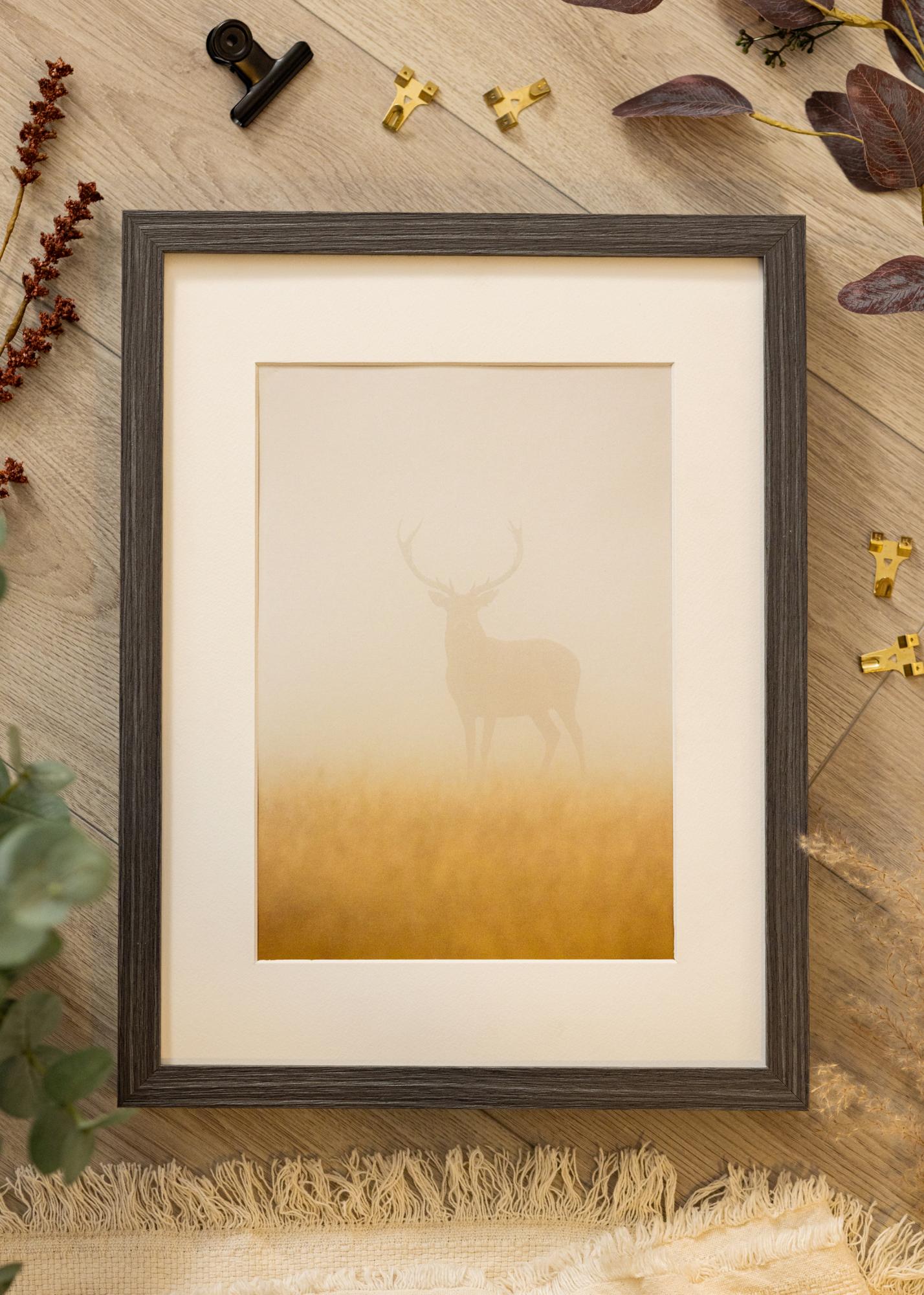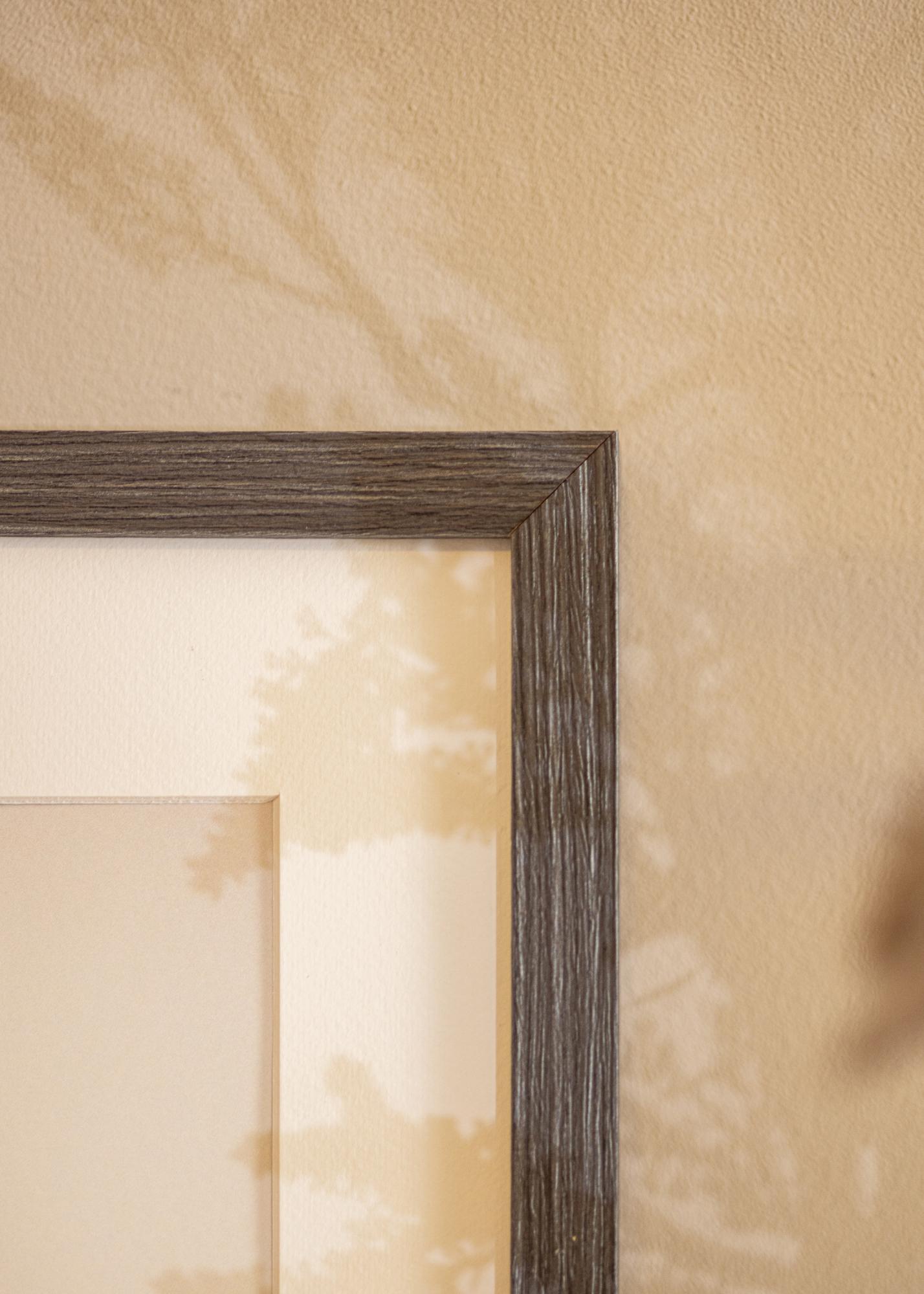 Wood Selection Grey I är en måttbeställd tavelram som erbjuder en perfekt kombination av stil och funktionalitet. Med sin grå färg och mörkbetsade träfinish, ger denna fotoram en sofistikerad touch till dina bilder och konstverk. Den naturliga ådringen i träet löper längs kanterna och skapar en visuell dynamik som fångar ögat.