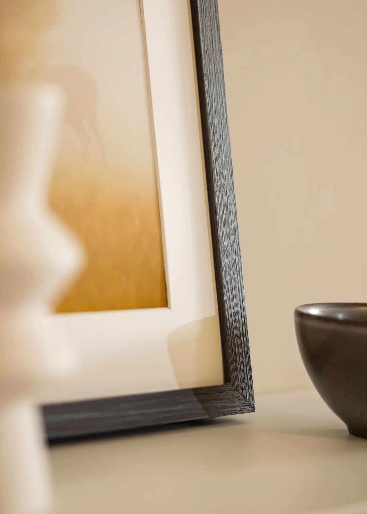 Denna ram har en 21 mm bred ramlist och ett djup på 38 mm, vilket ger den en robust och stabil känsla. Den matta finishen förstärker den autentiska träkänslan och framhäver den rustika karaktären hos ramen. De raka linjerna bidrar till en stilren och minimalistisk form som passar in i de flesta inredningsstilar.