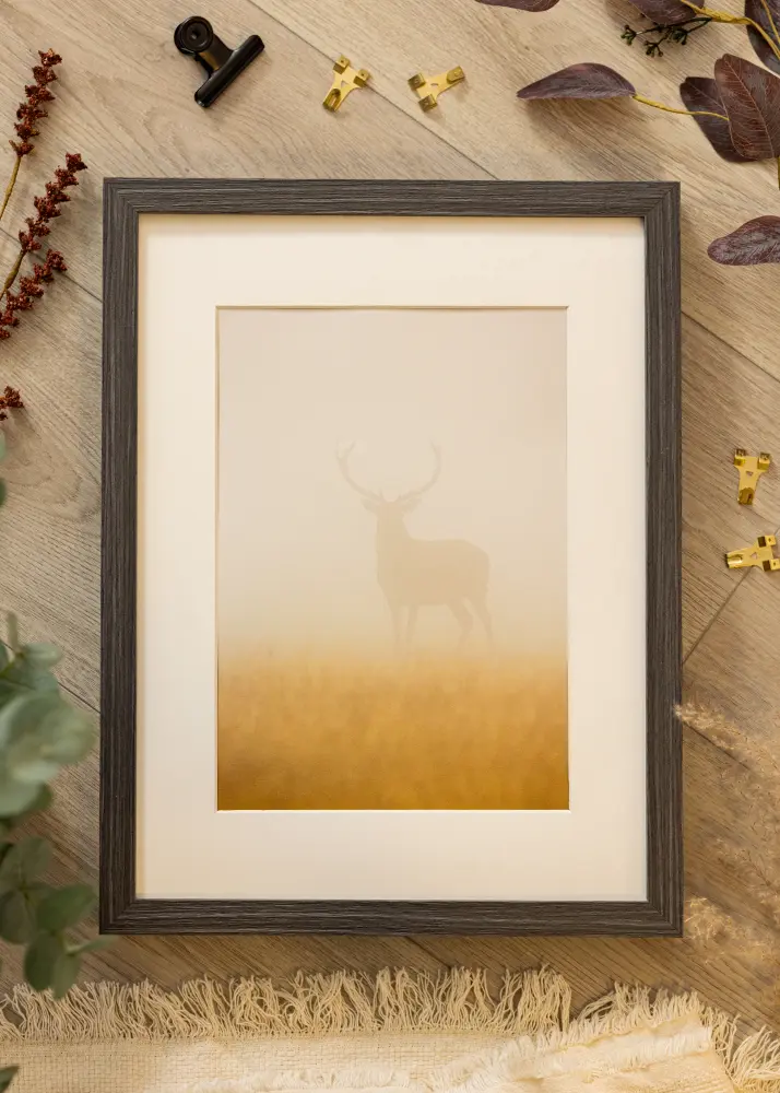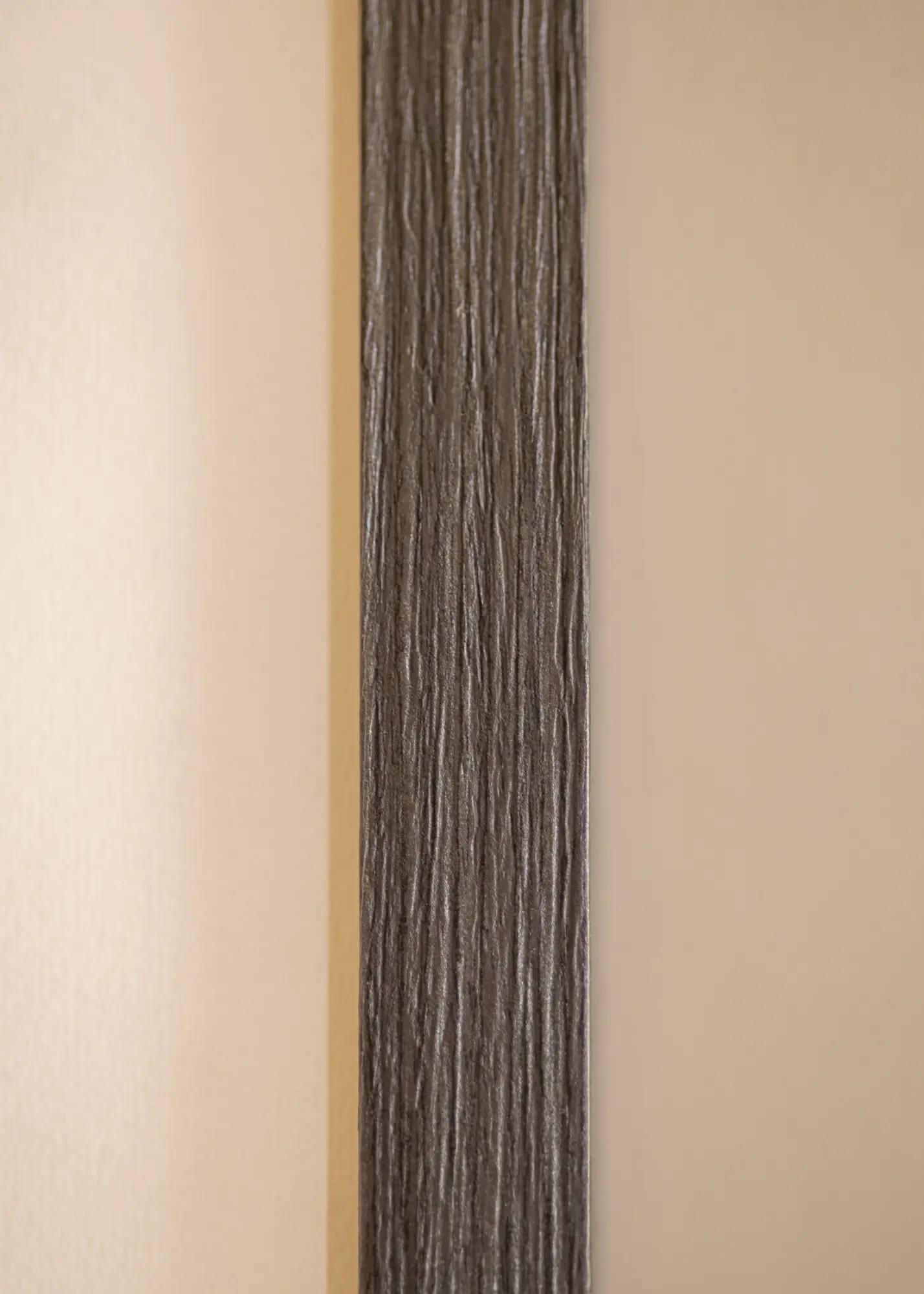 Wood Selection Grey I är en måttbeställd tavelram som erbjuder en perfekt kombination av stil och funktionalitet. Med sin grå färg och mörkbetsade träfinish, ger denna fotoram en sofistikerad touch till dina bilder och konstverk. Den naturliga ådringen i träet löper längs kanterna och skapar en visuell dynamik som fångar ögat.