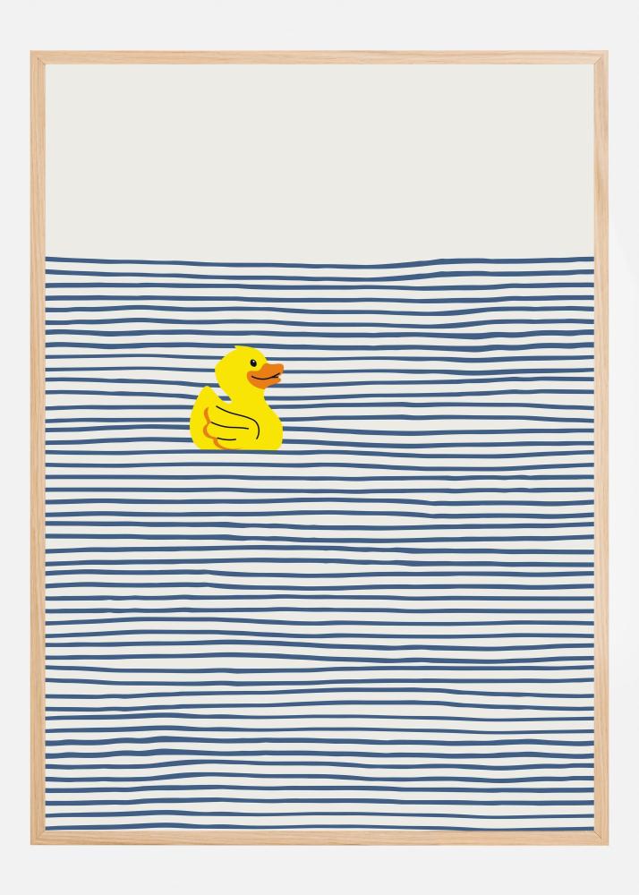 Den här moderna och stilrena printen blir ett sofistikerat tillägg till ditt hem, kontor eller som en del av en större väggkonstinstallation. Det enkla, men ändå effektfulla mönstret består av snygga, horisontella linjer som skapar en känsla av rörelse och rytm. Den lekfulla inslagen av den gula gummiankan tillför en överraskande och humoristisk detalj som utan tvekan kommer dra blicken till sig och väcka leenden hos de som ser den.