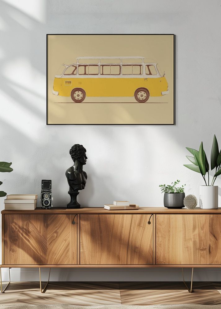 Denna stilrena affisch fångar essensen av retro-nostalgi med sin illustration av en klassisk skåpbil. Perfekt för den som älskar vintage-design eller vill lägga till en touch av äventyrskänsla i sitt hem, denna poster är ett fantastiskt sätt att uttrycka personlighet och stil. Bildens rent linjerade design gör den till ett iögonfallande konstverk var den än placeras.