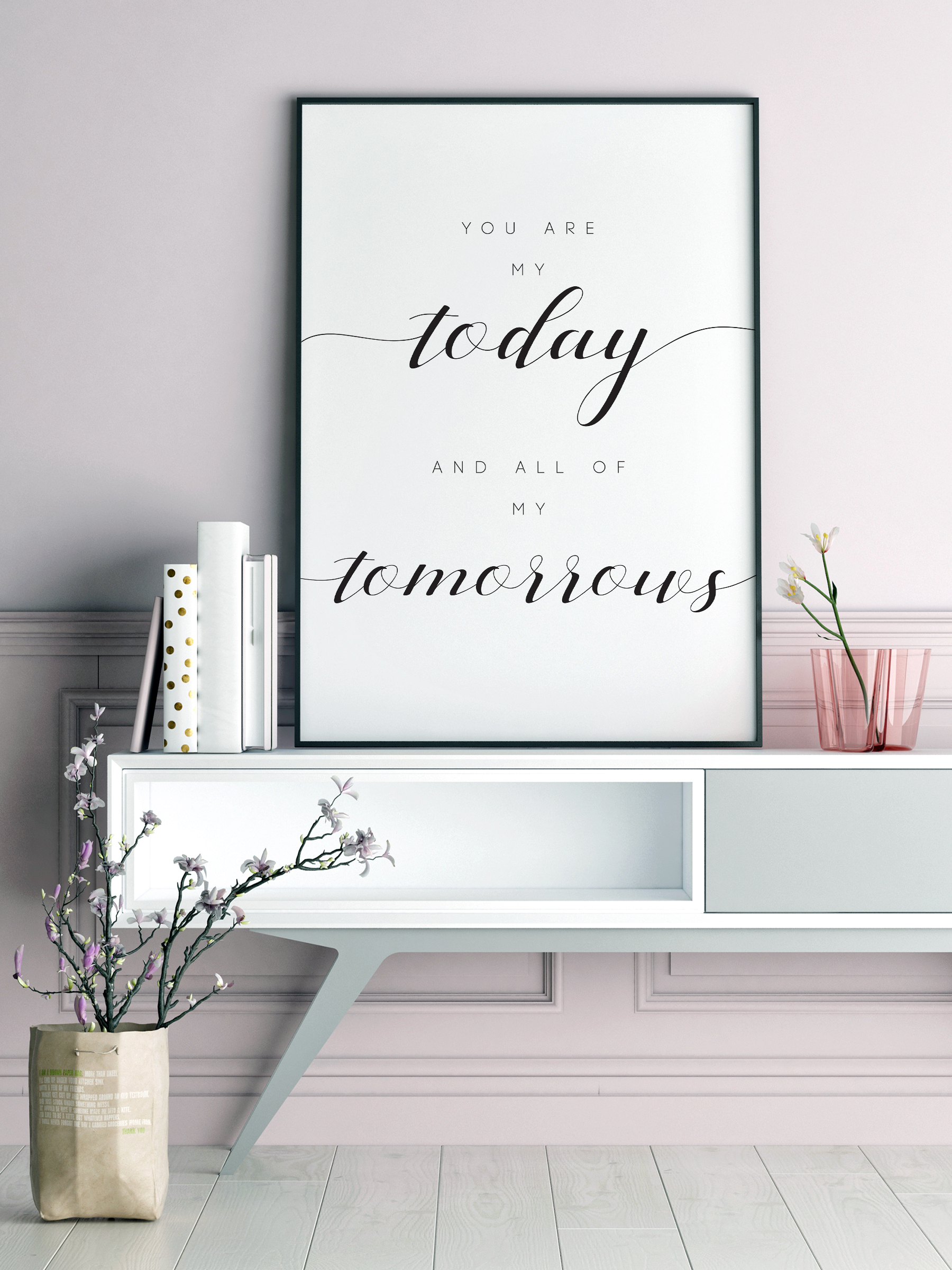 En motiverande poster med ett starkt citat som ska inspirera dig dagligen. You Are My Today and All of My Tomorrows är den perfekta presenten till en älskad person för att visa dem hur mycket du uppskattar dem. Placera den på en plats där de kan se den varje morgon.